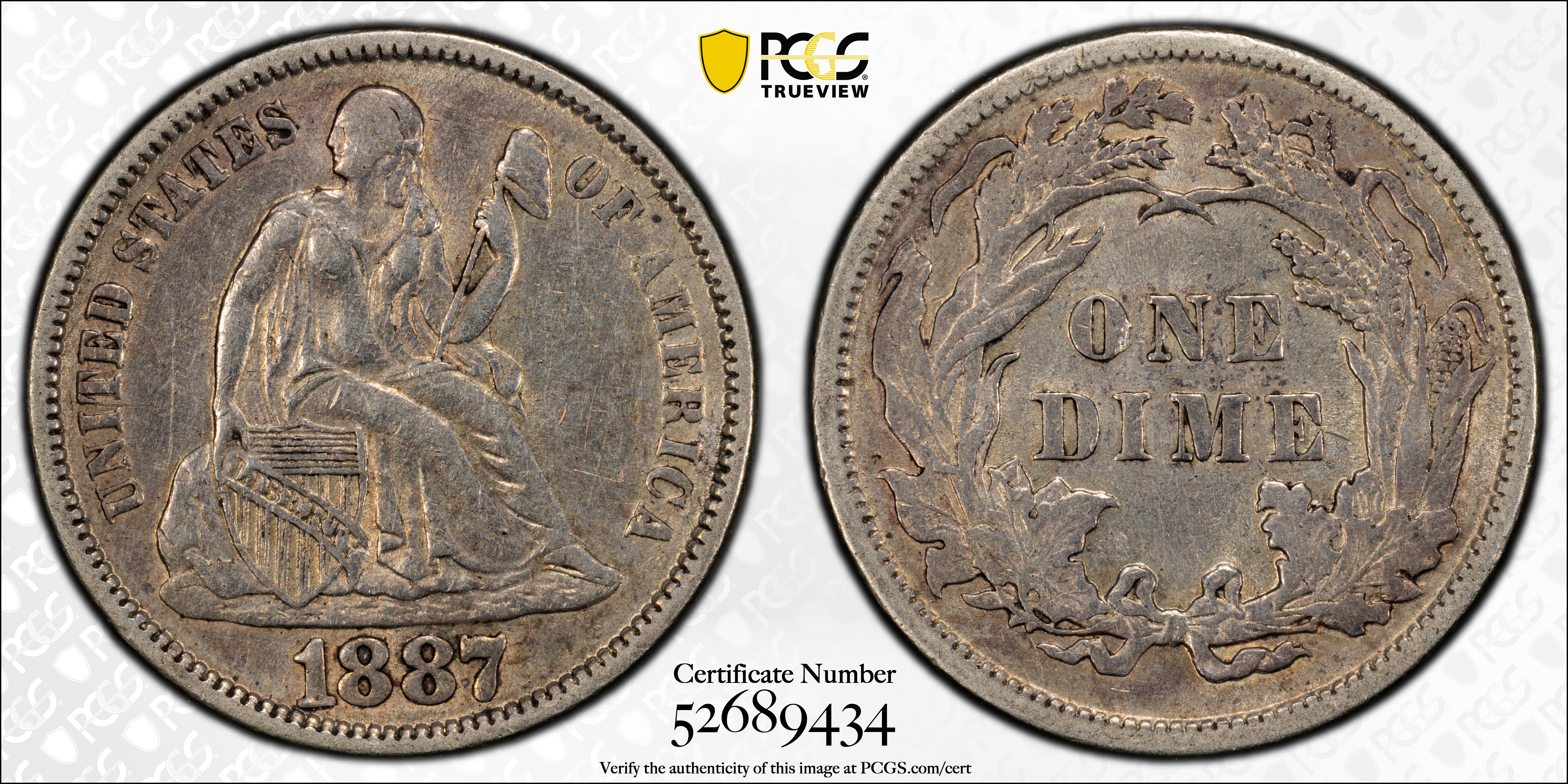 1887 10C AU50 Certification #52689434, PCGS #4698