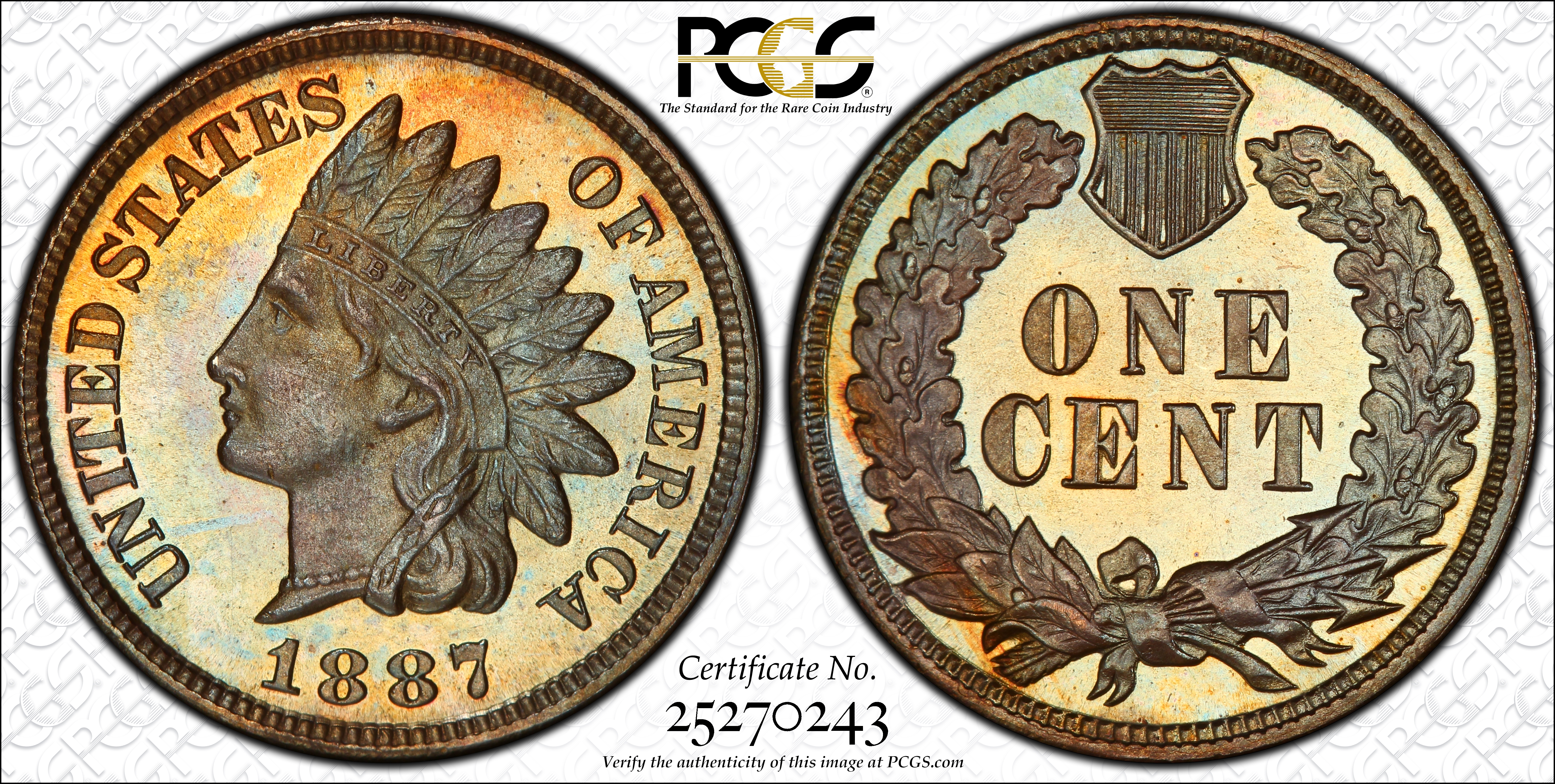 1887 1C, BN PR67BN Certification #25270243, PCGS #2348