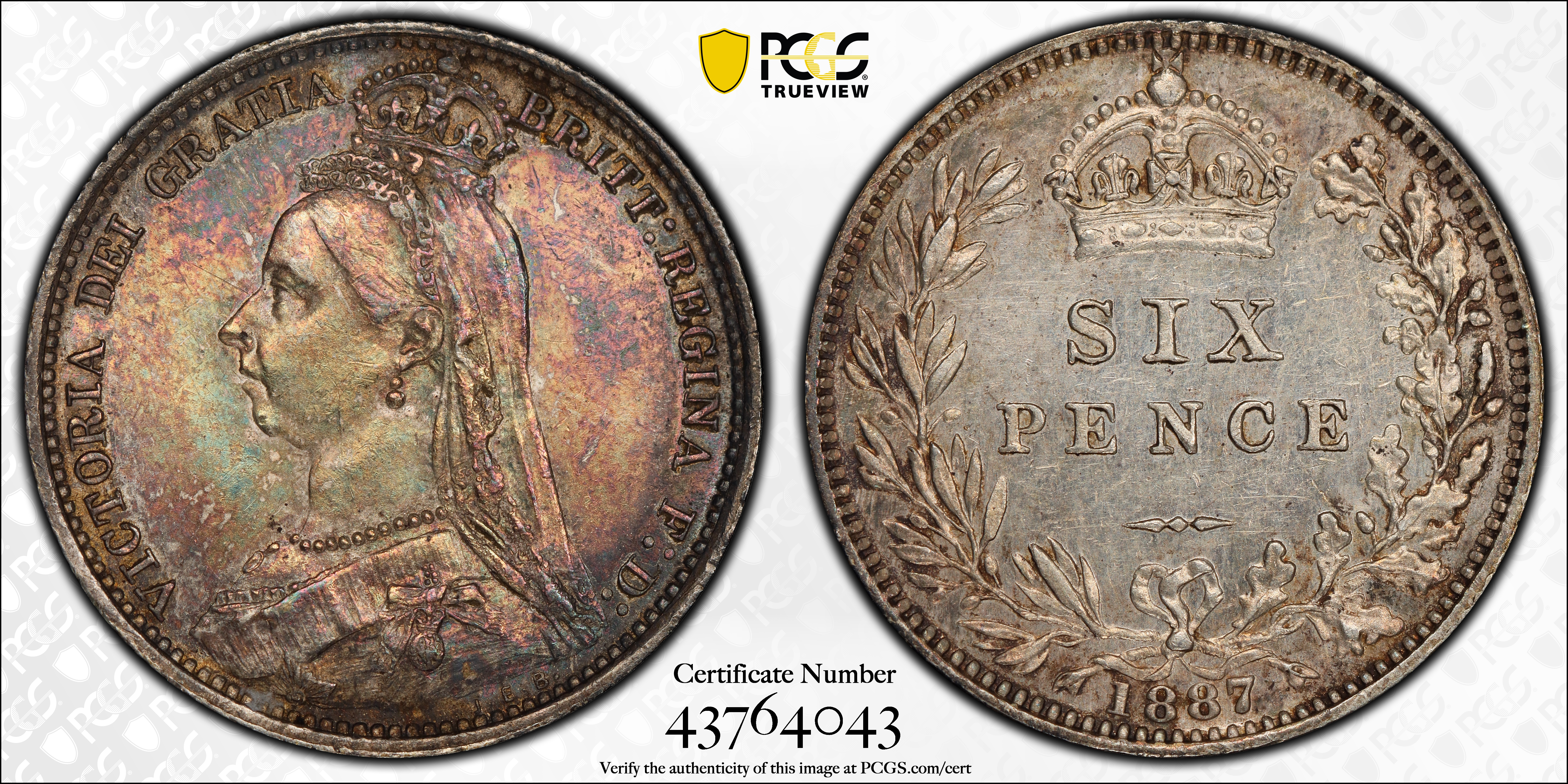 1887 6D S-3929 Value Rev MS62 Certification #43764043, PCGS #204952