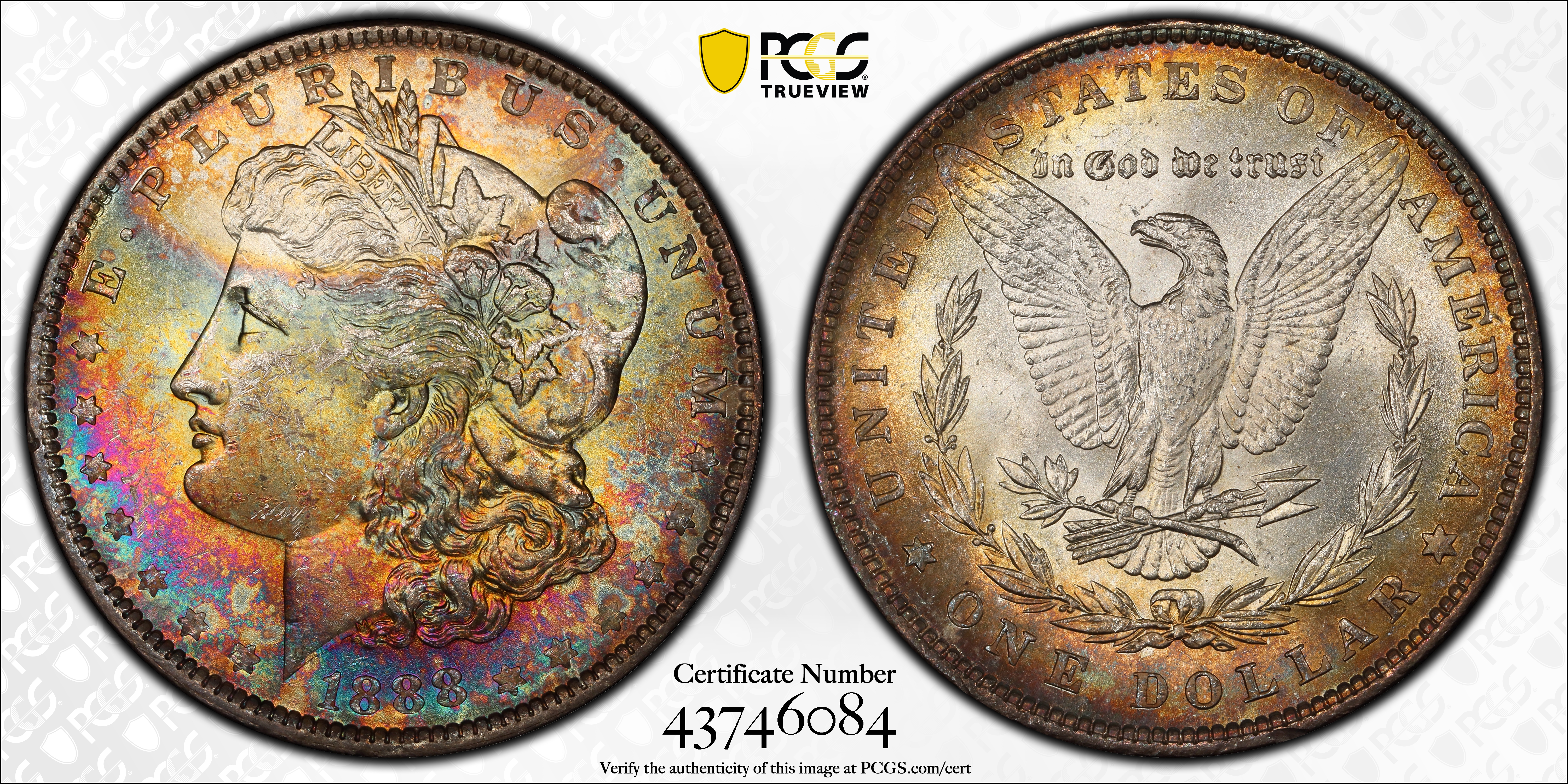 1888 $1 MS63+ Certification #43746084, PCGS #7182