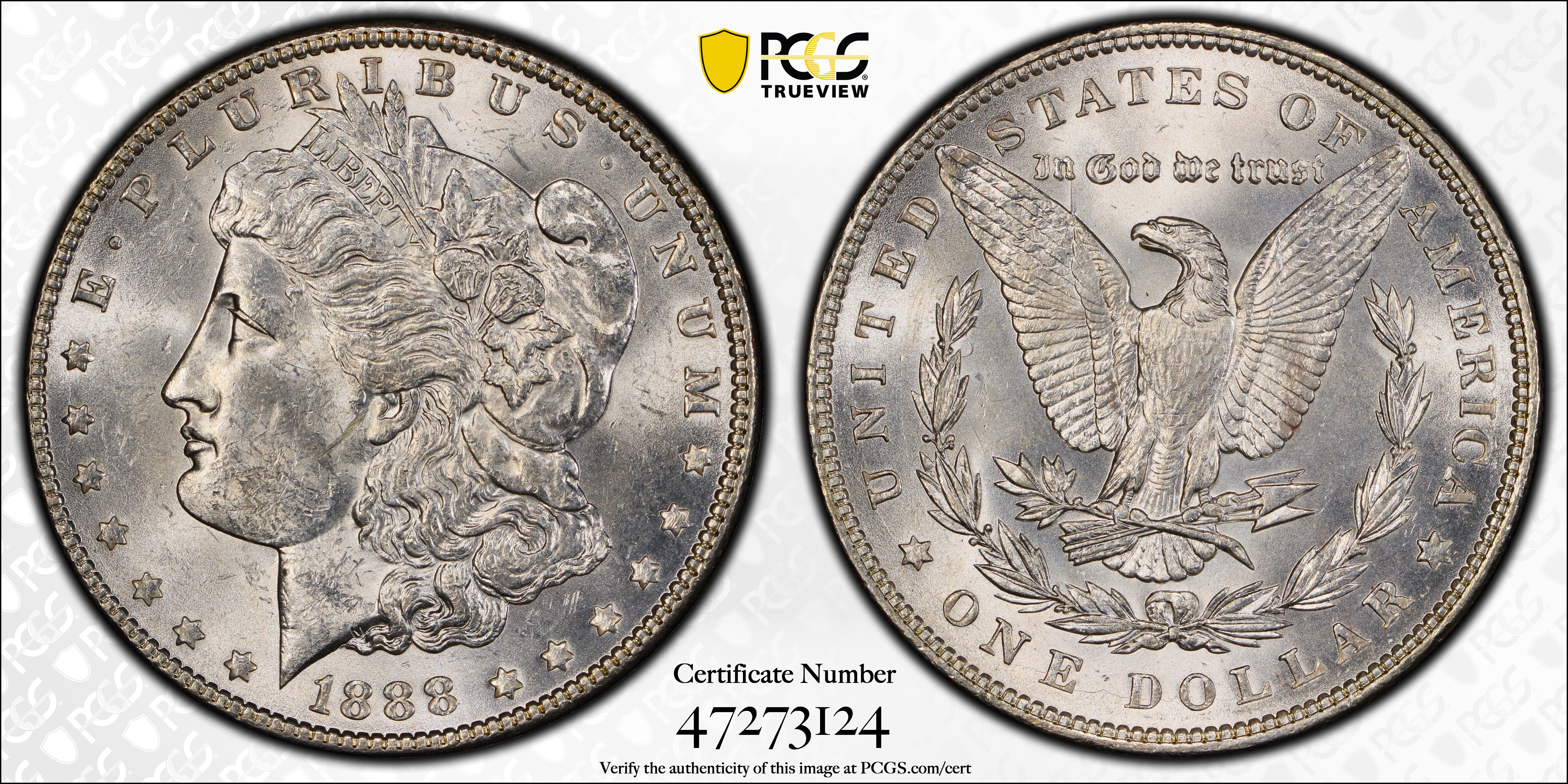 1888 $1 MS62 Certification #47273124, PCGS #7182