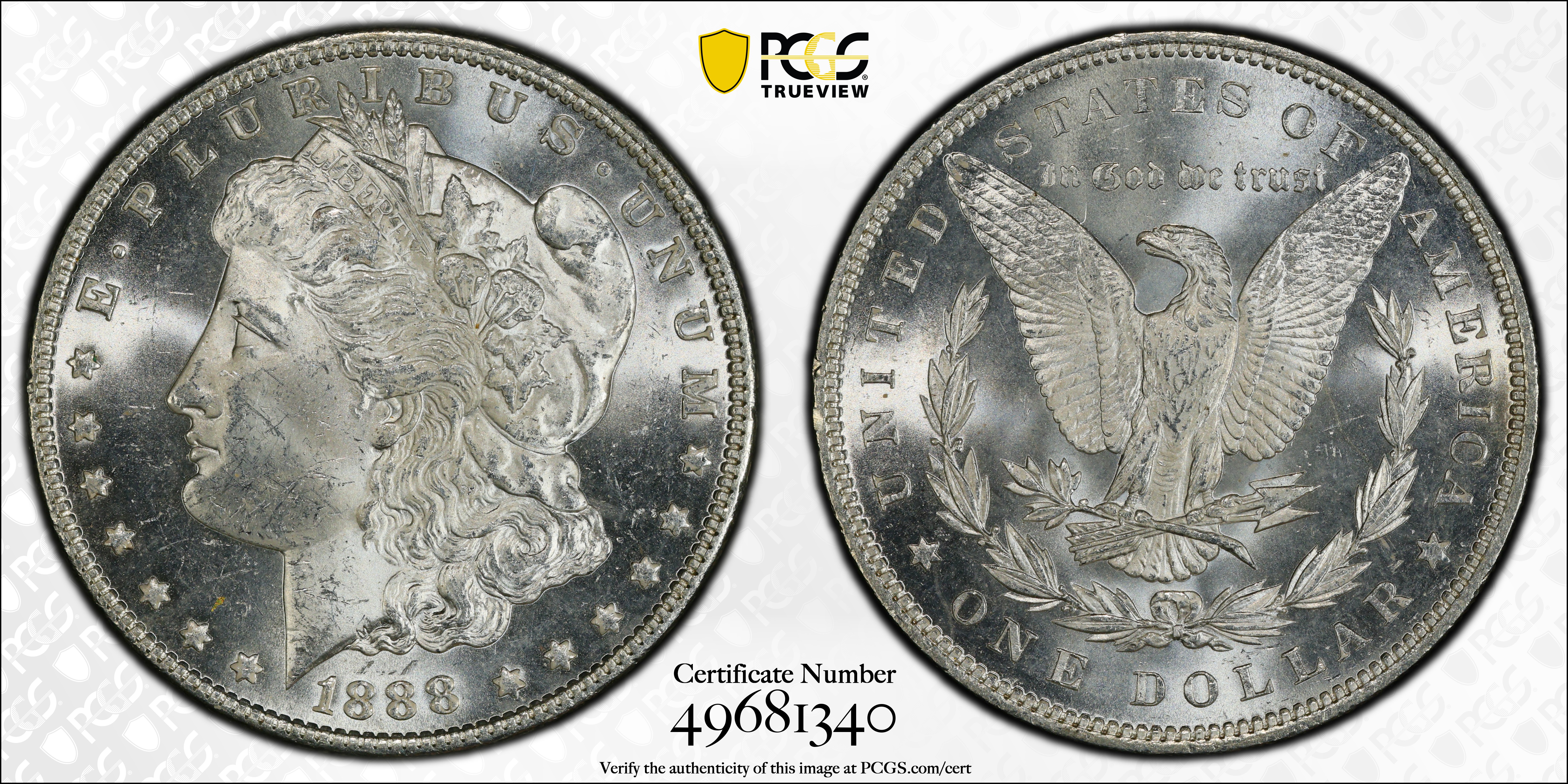 1888 $1 MS64 Certification #49681340, PCGS #7182