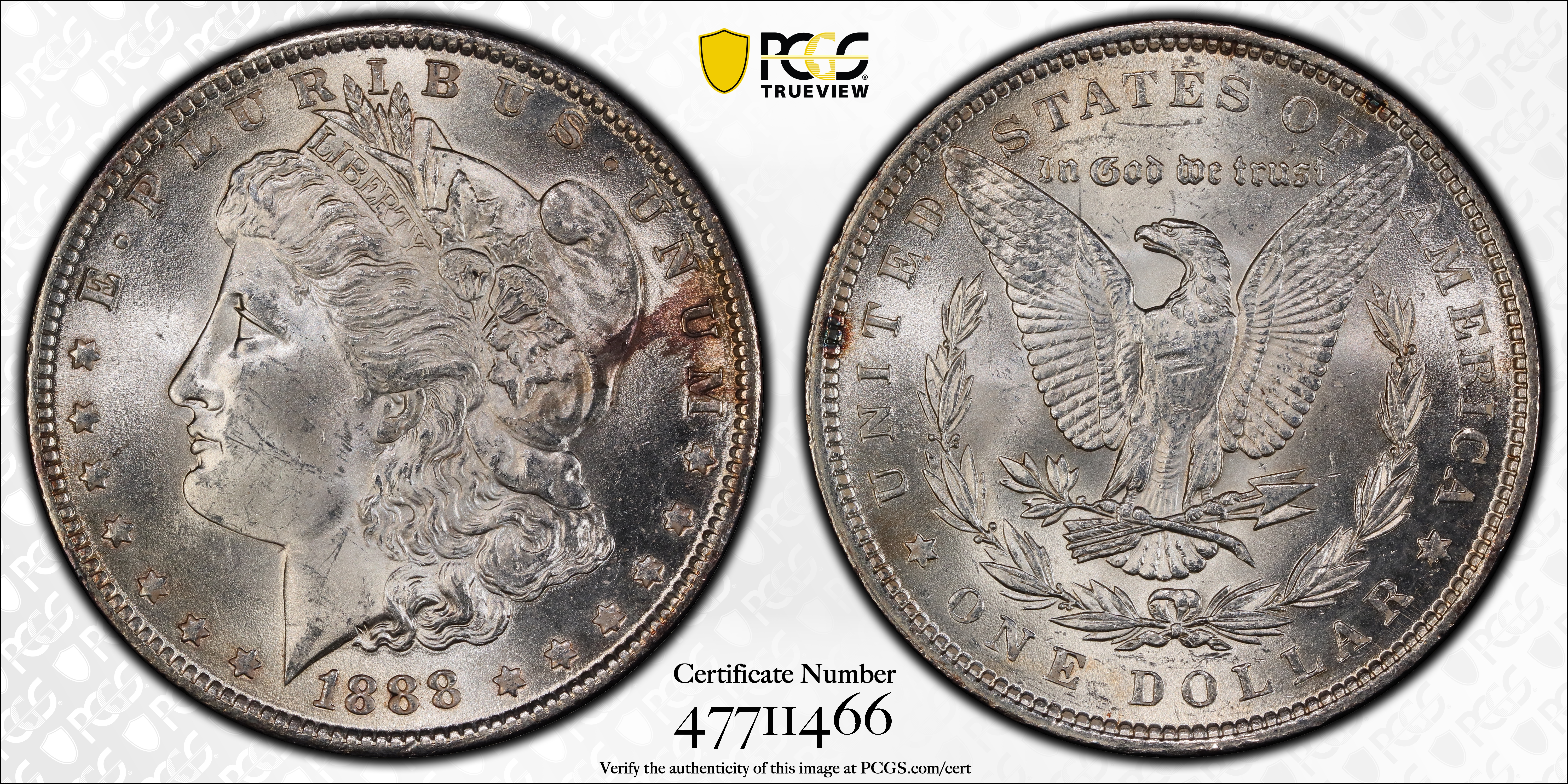 1888 $1 MS64 Certification #47711466, PCGS #7182