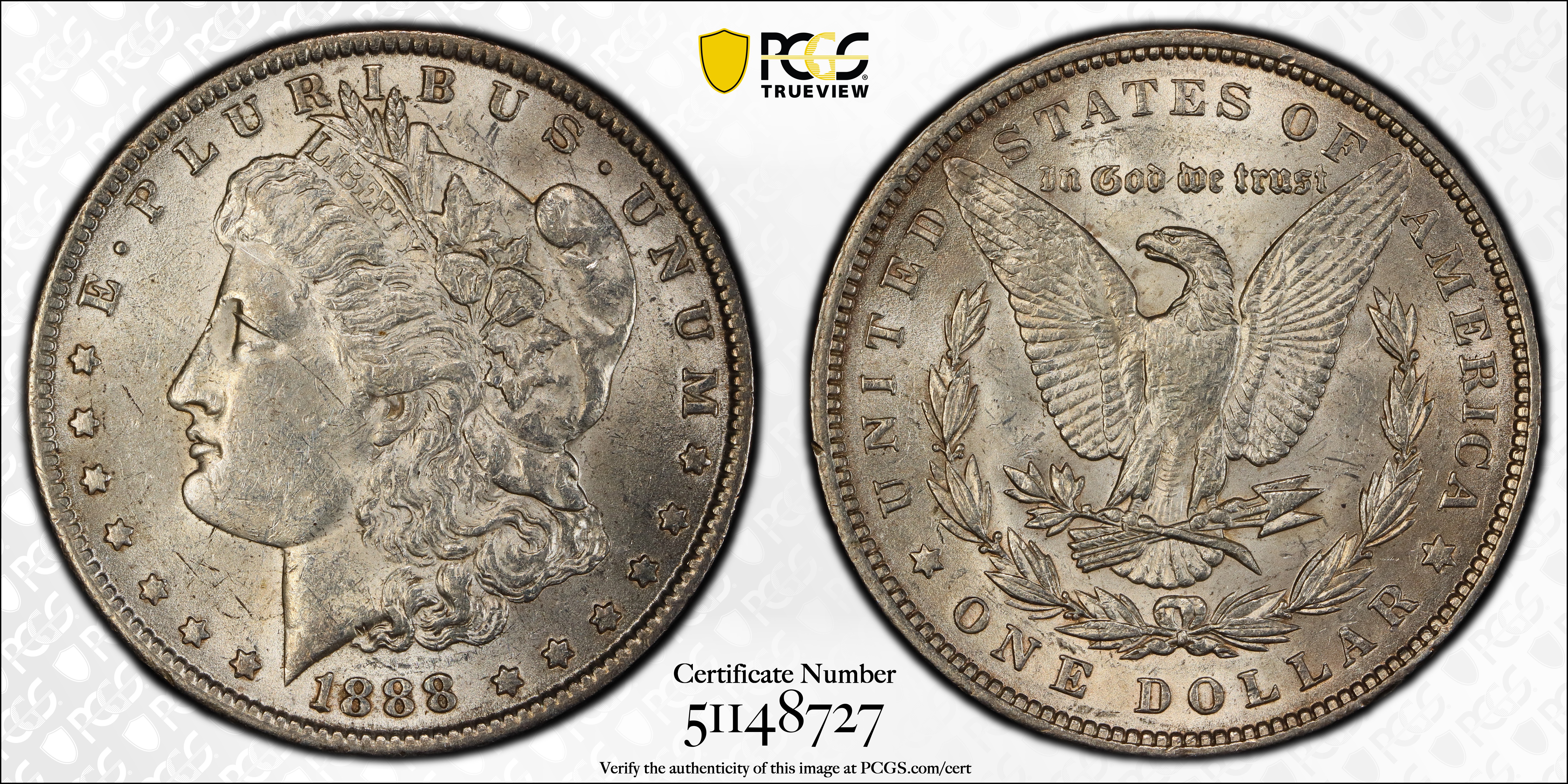 1888 $1 AU58 Certification #51148727, PCGS #7182