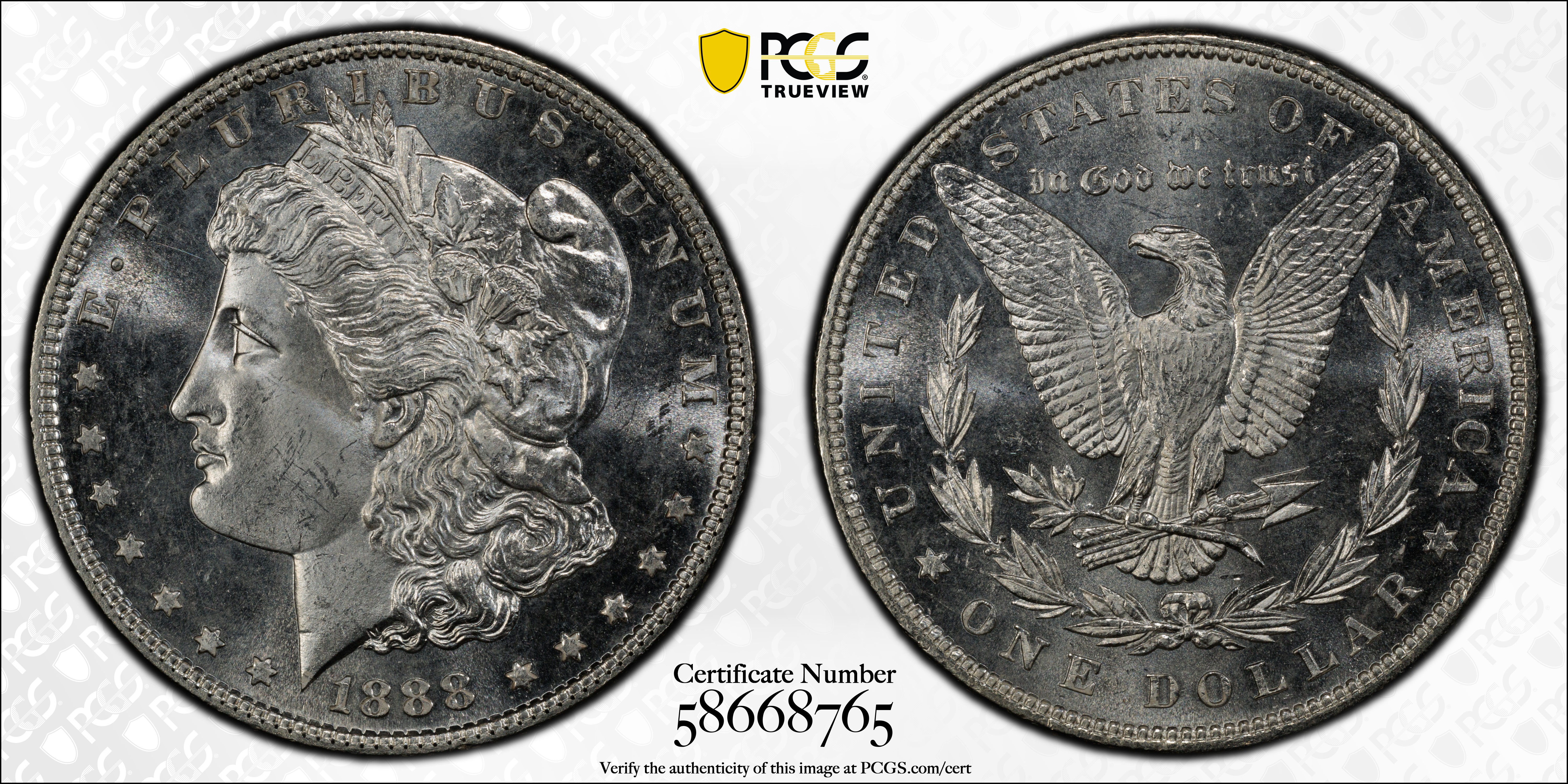 1888 $1, PL MS66PL Certification #58668765, PCGS #7183