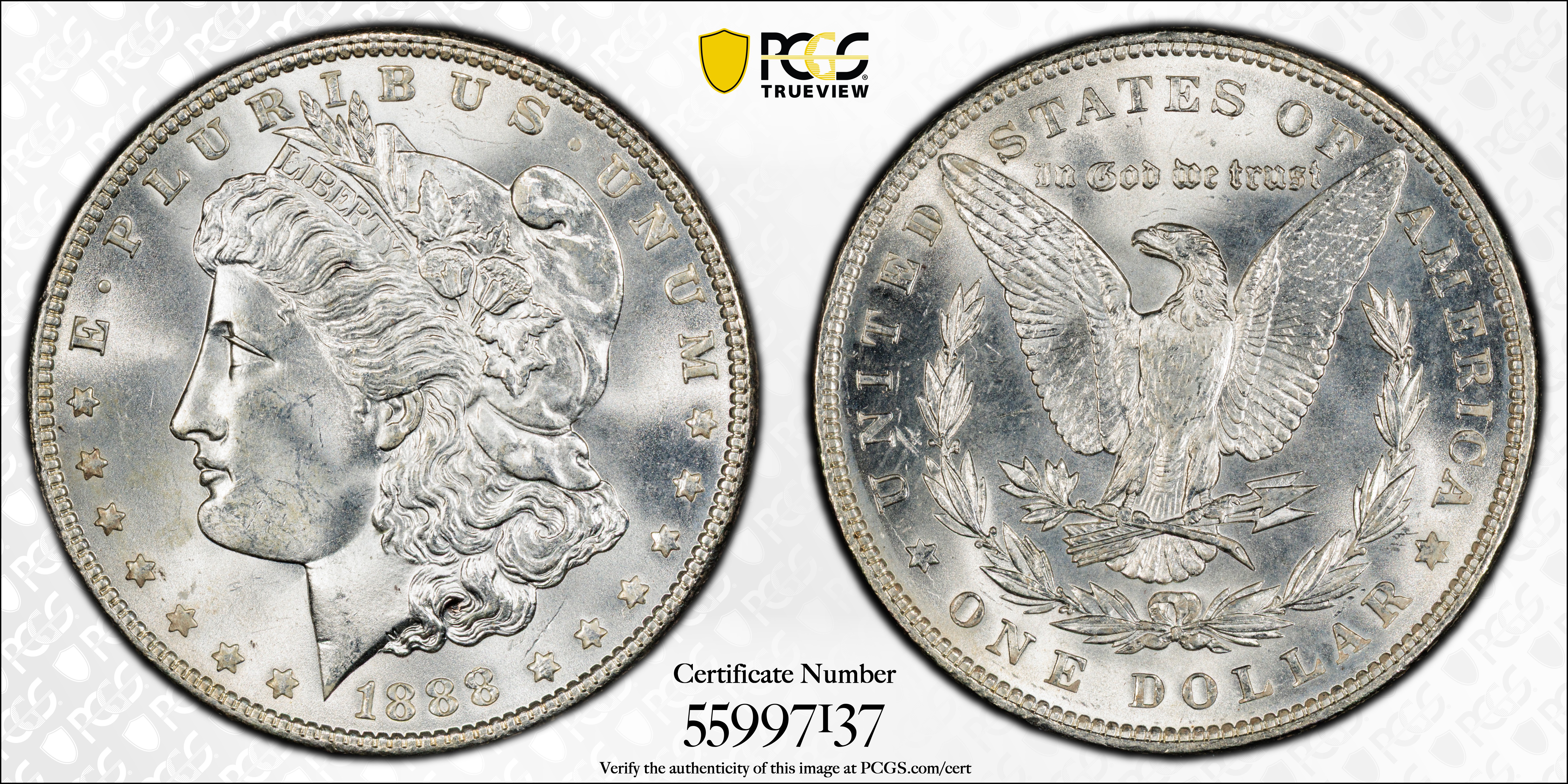 1888 $1 MS65 Certification #55997137, PCGS #7182