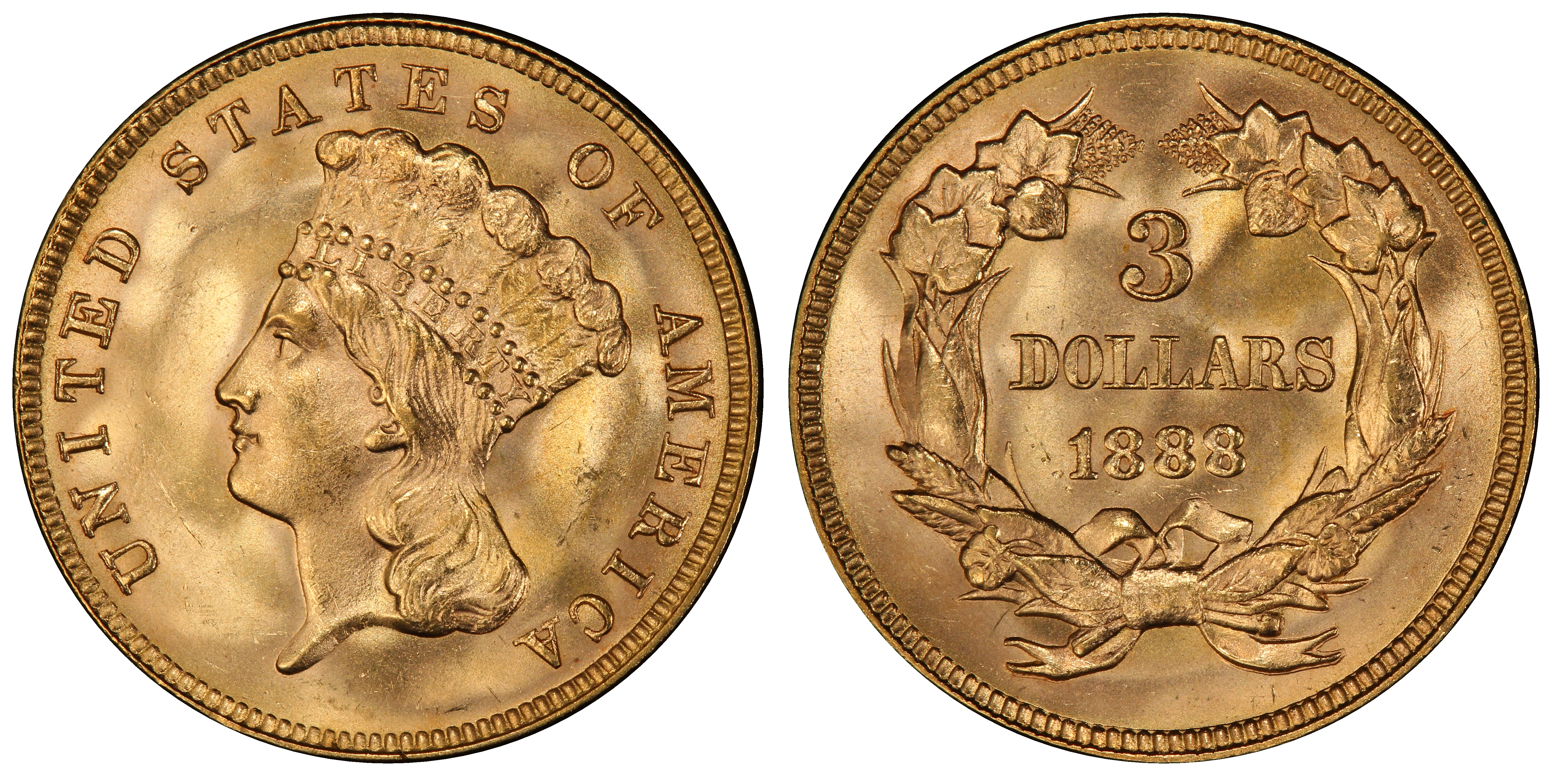 1888 $3 MS65+ Certification #32943936, PCGS #8010