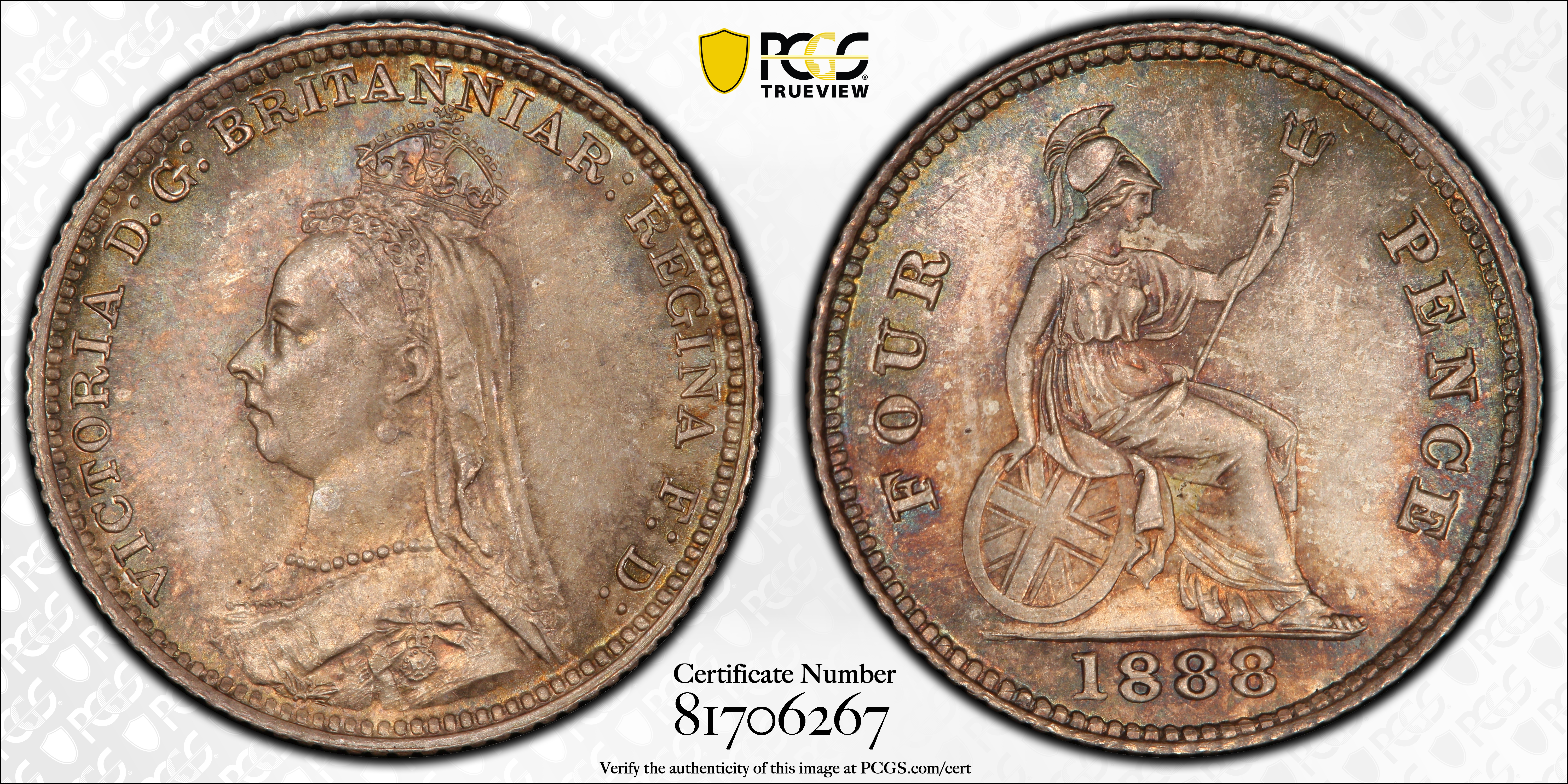 1888 4D S-3930 Britannia Reverse MS66 Certification #81706267, PCGS #464032