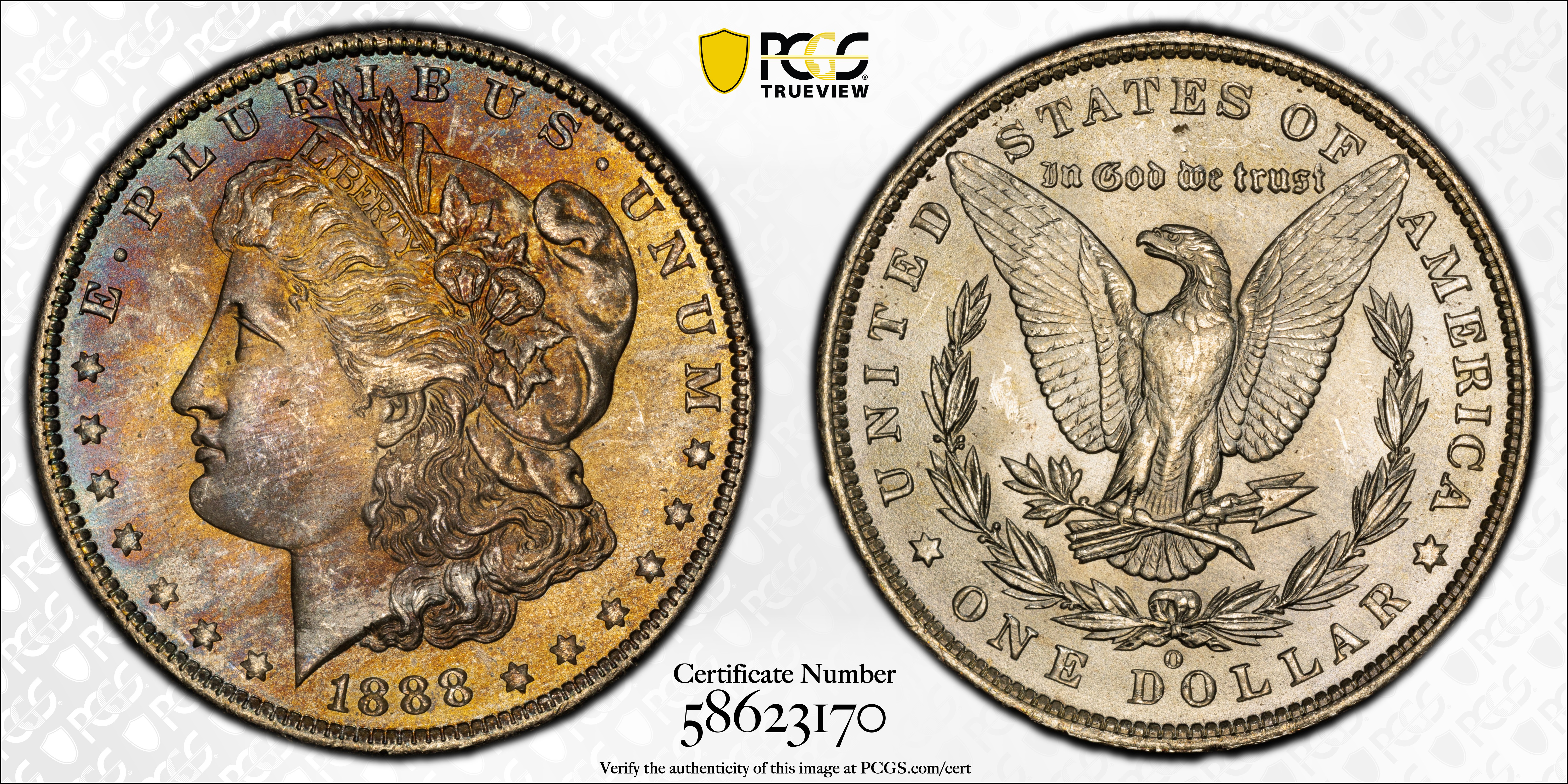 1888-O $1 MS65+ Certification #58623170, PCGS #7184
