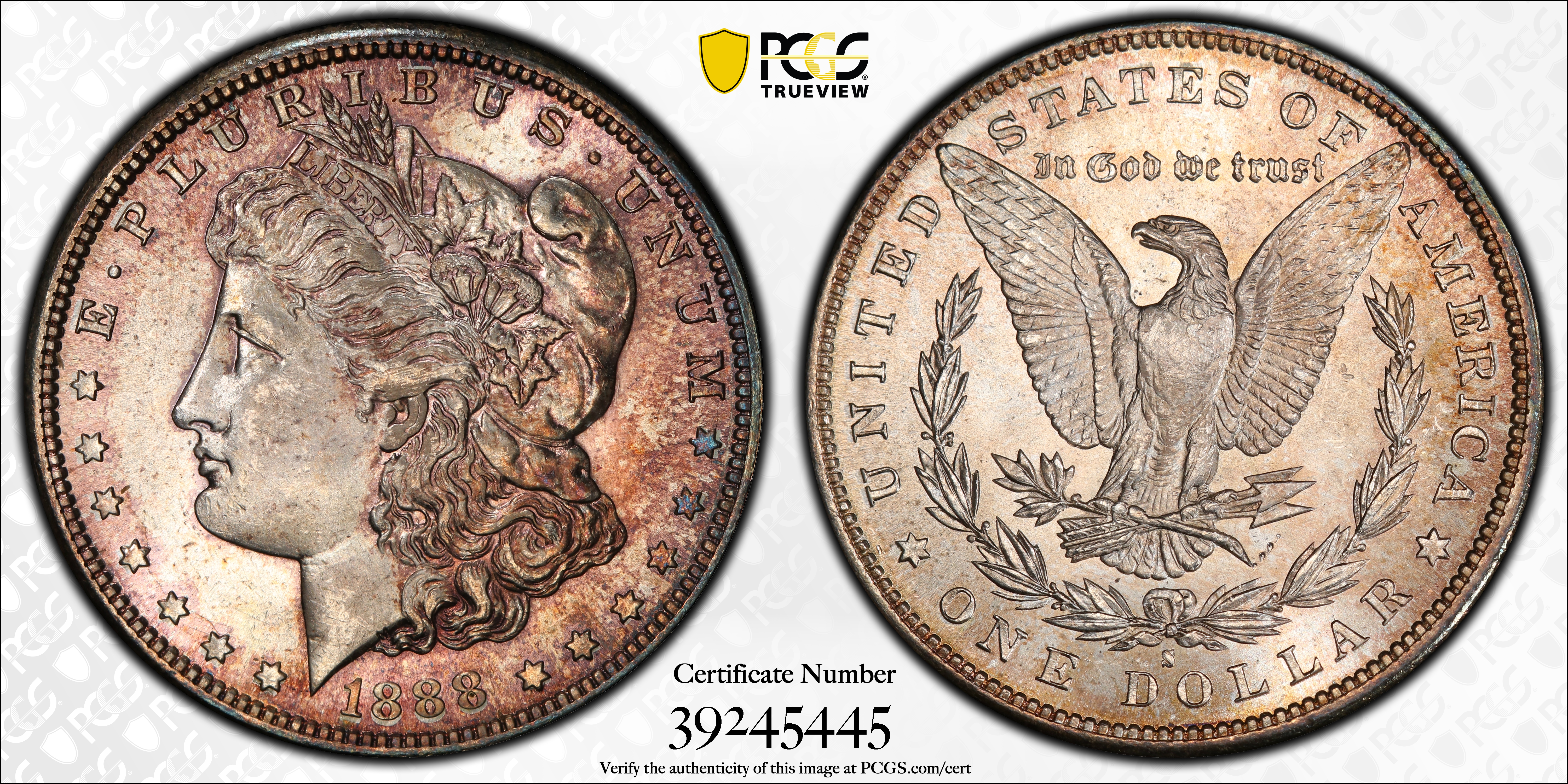 1888-S $1 MS64 Certification #39245445, PCGS #7186
