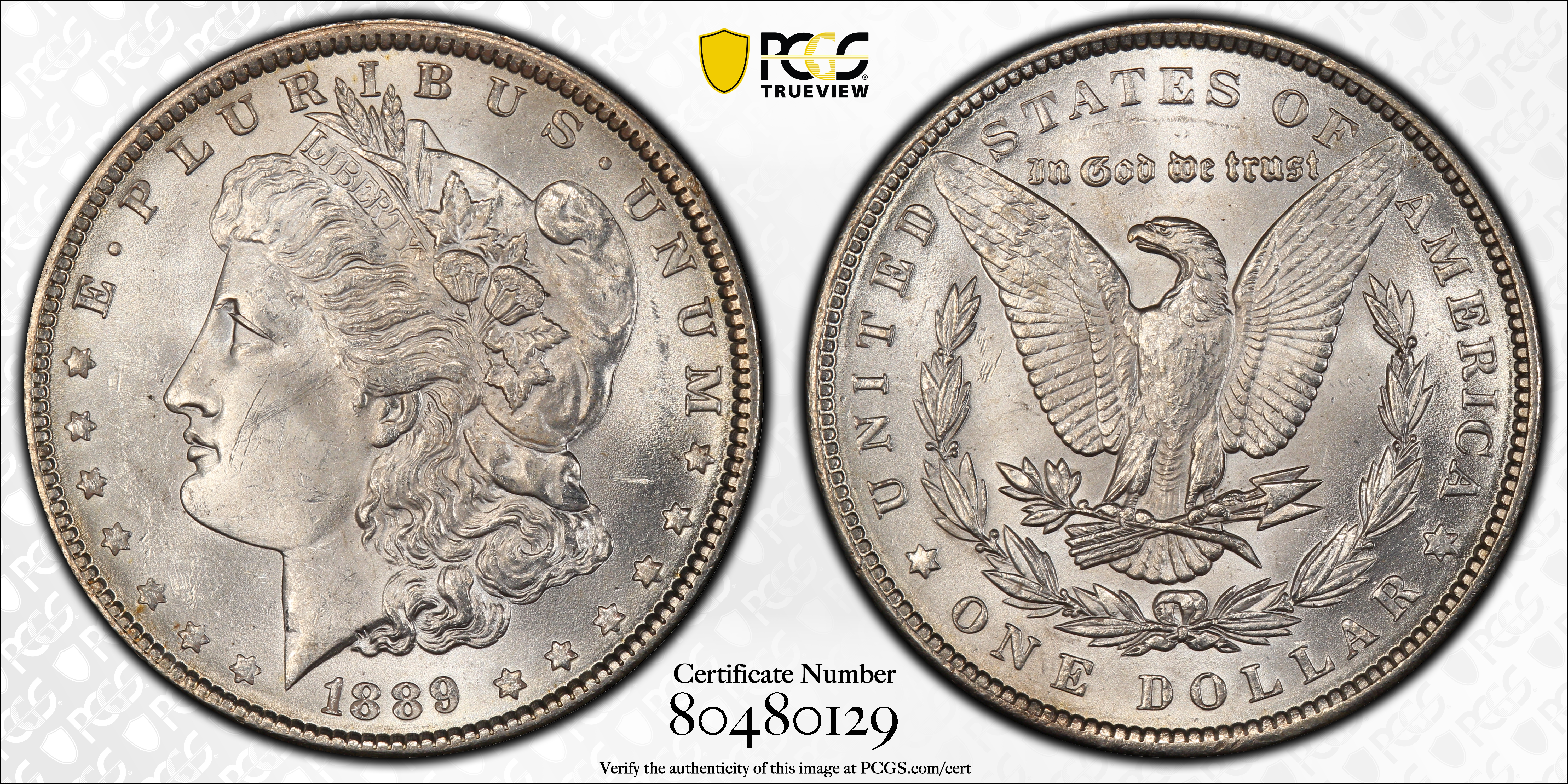 1889 $1 MS63 Certification #80480129, PCGS #7188