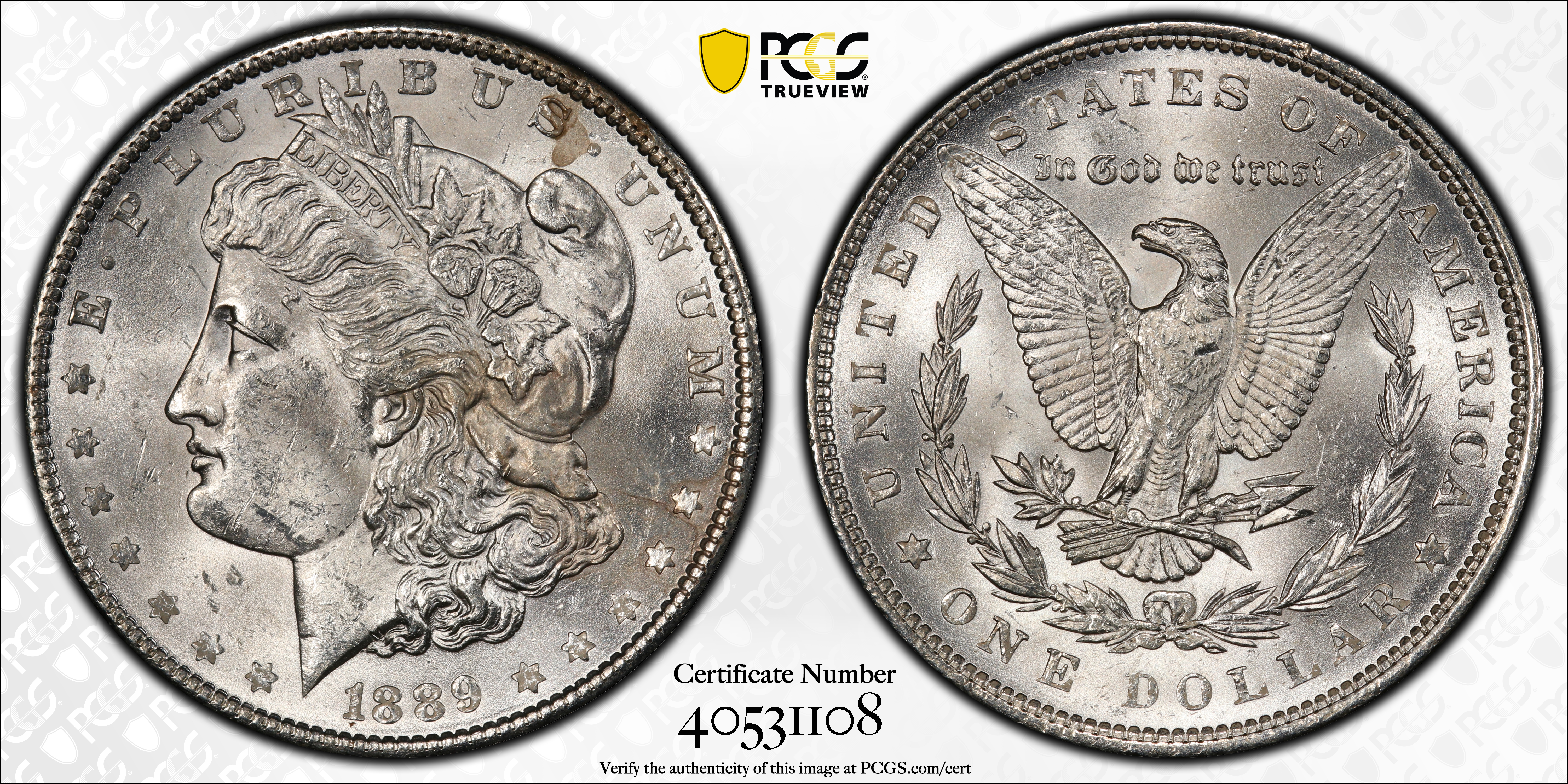 1889 $1 MS62 Certification #40531108, PCGS #7188