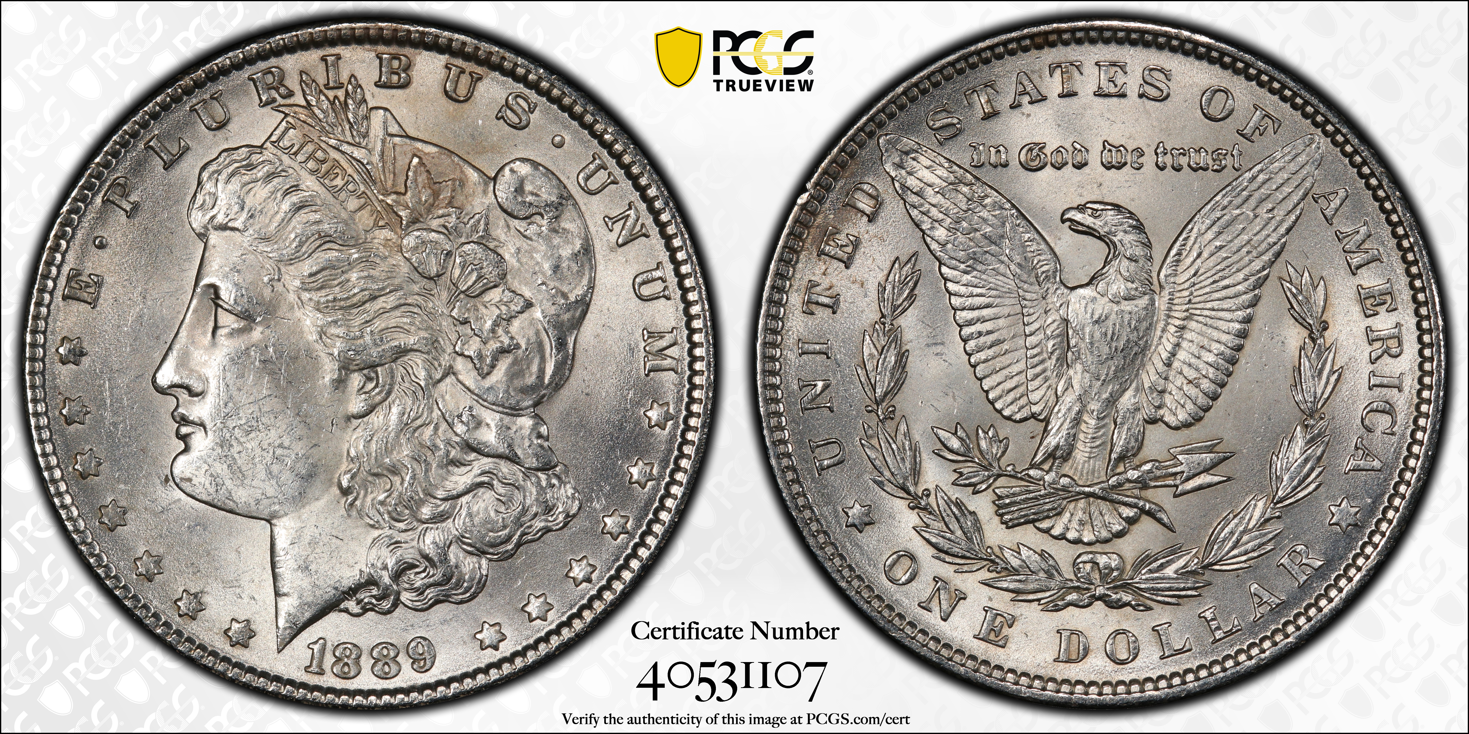 1889 $1 MS62 Certification #40531107, PCGS #7188