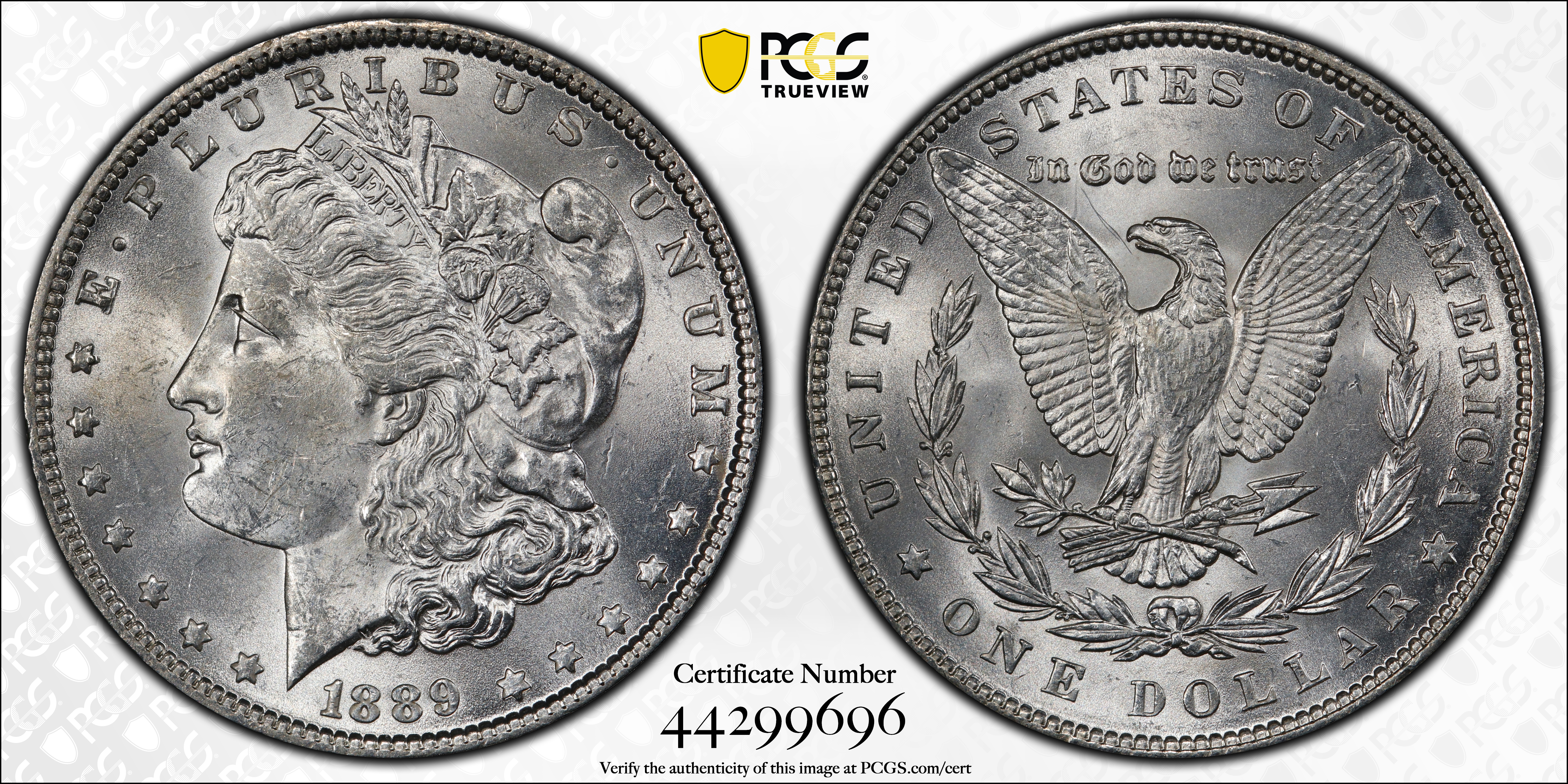 1889 $1 MS63 Certification #44299696, PCGS #7188