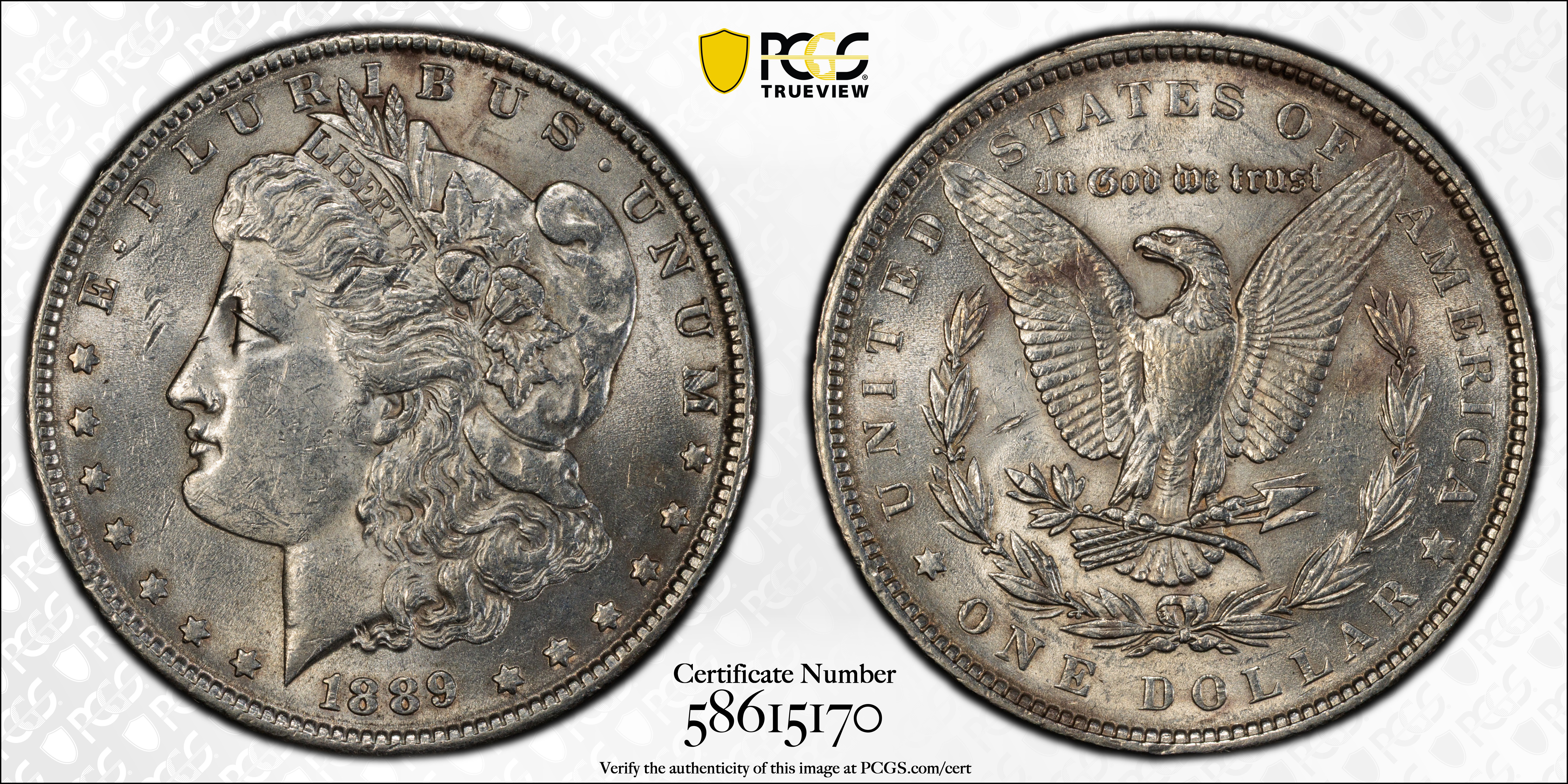 1889 $1 AU55 Certification #58615170, PCGS #7188