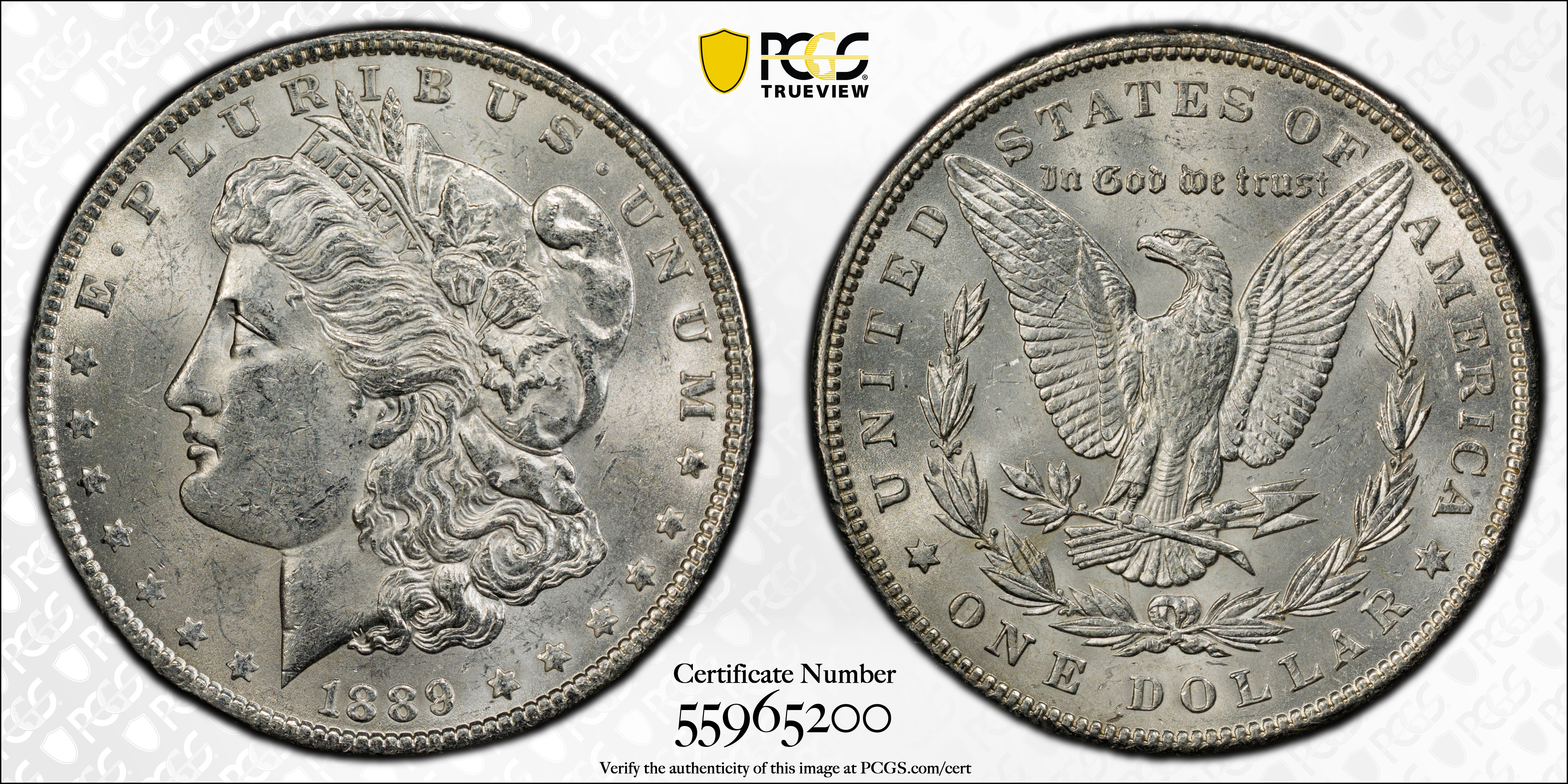 1889 $1 MS62 Certification #55965200, PCGS #7188