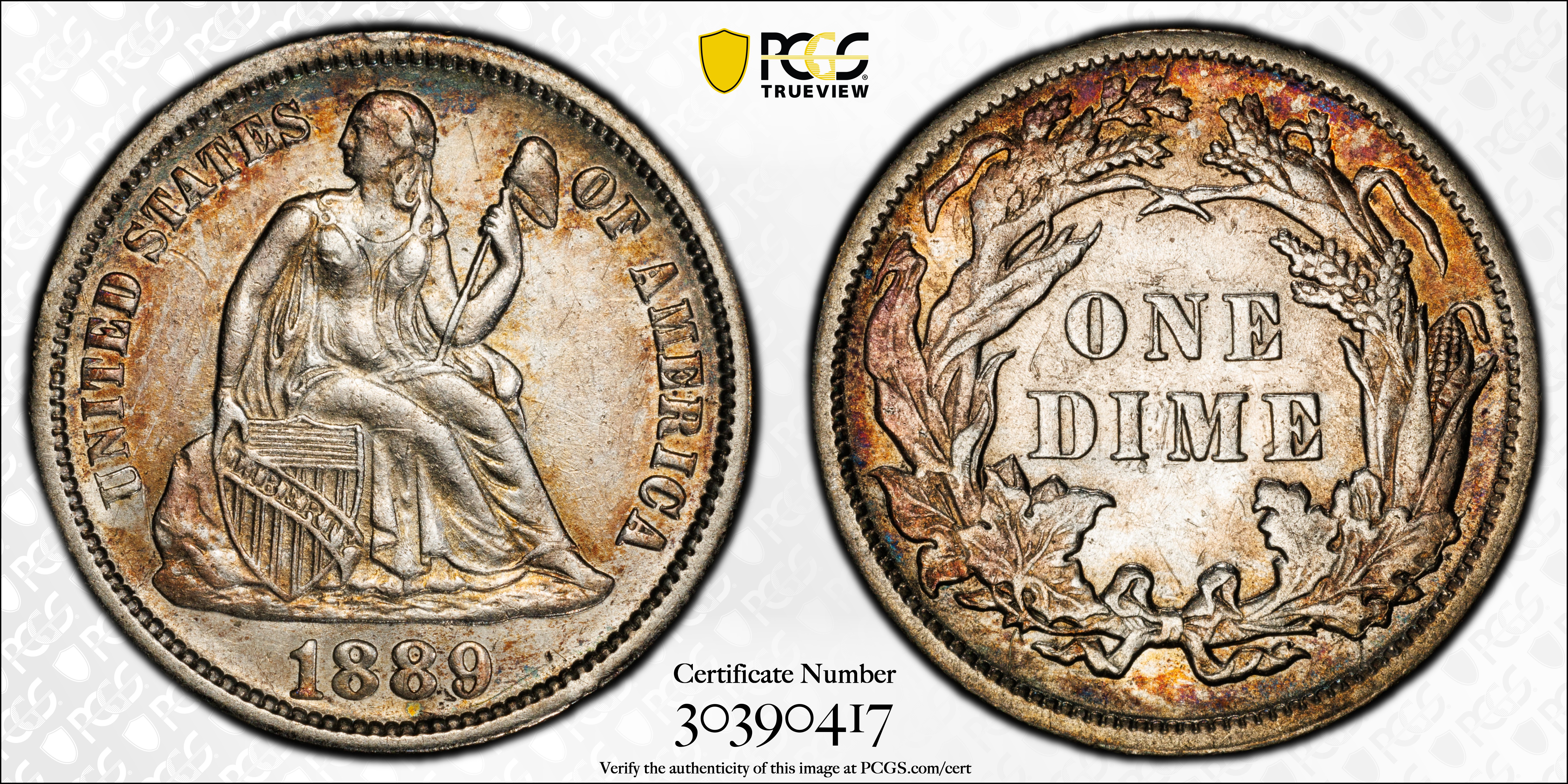 1889 10C AU53 Certification #30390417, PCGS #4702