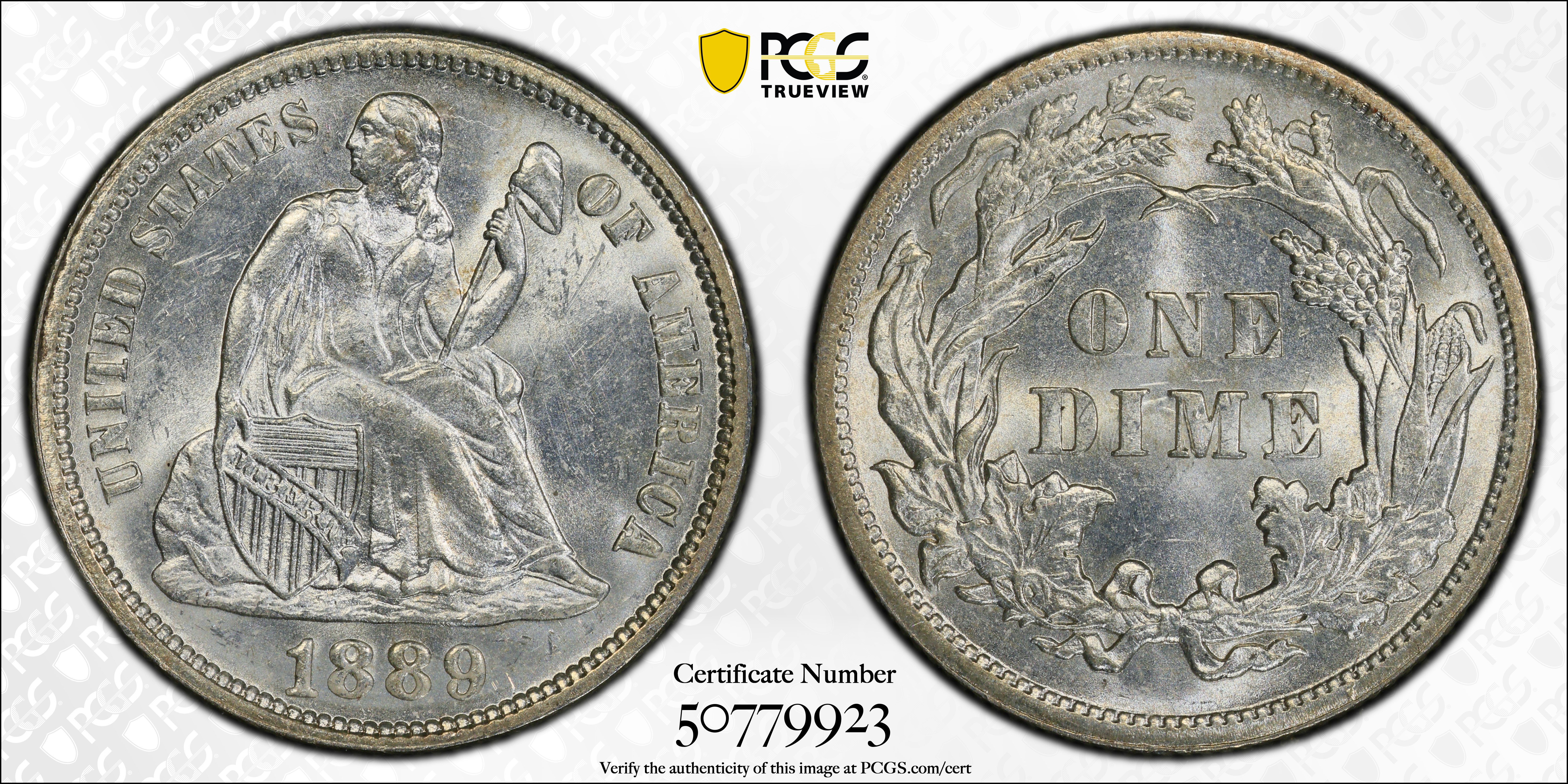 1889 10C MS63 Certification #50779923, PCGS #4702