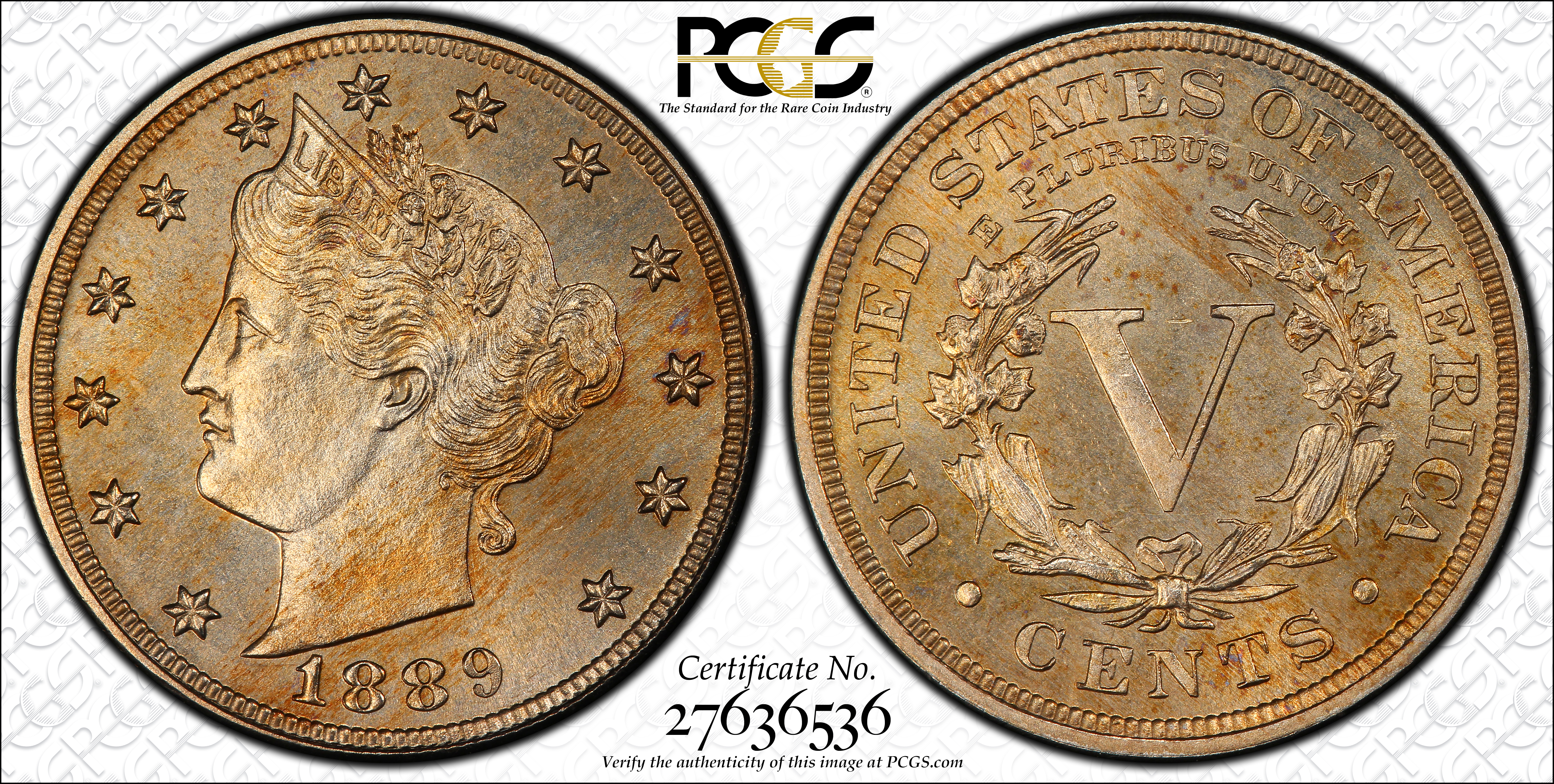 1889 5C PR64 Certification #27636536, PCGS #3887