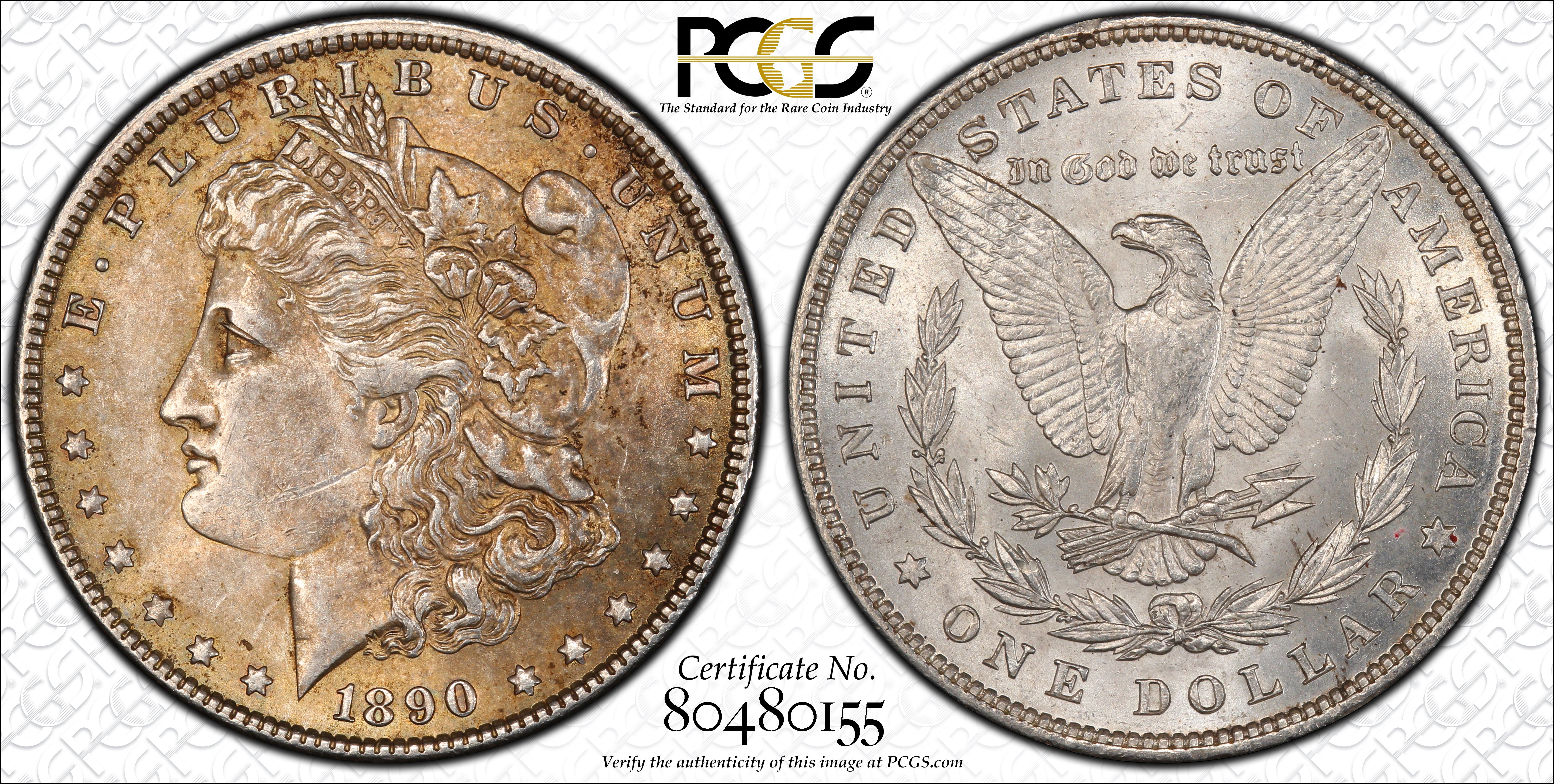 1890 $1 MS62 Certification #80480155, PCGS #7196