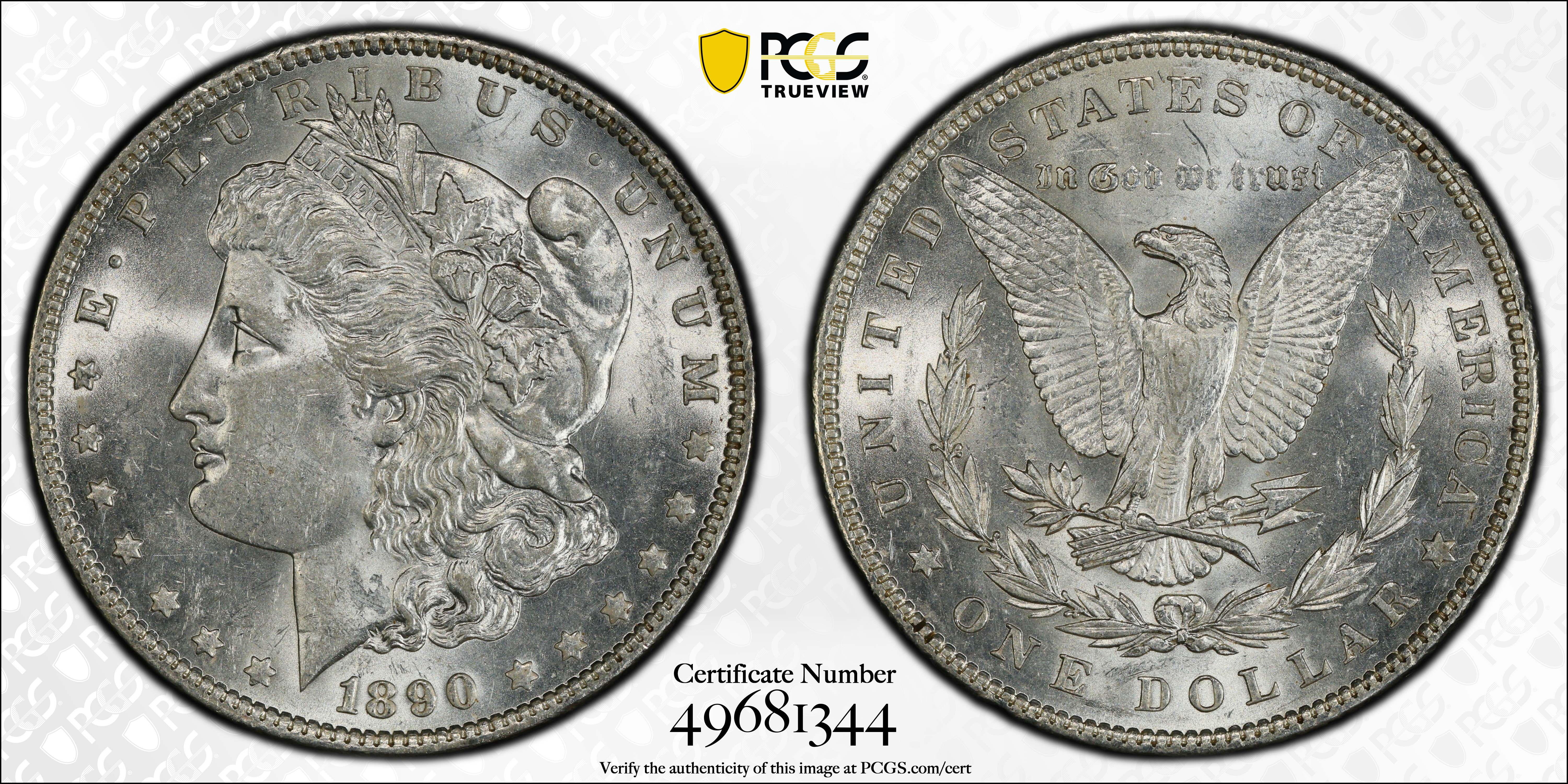 1890 $1 AU58 Certification #49681344, PCGS #7196