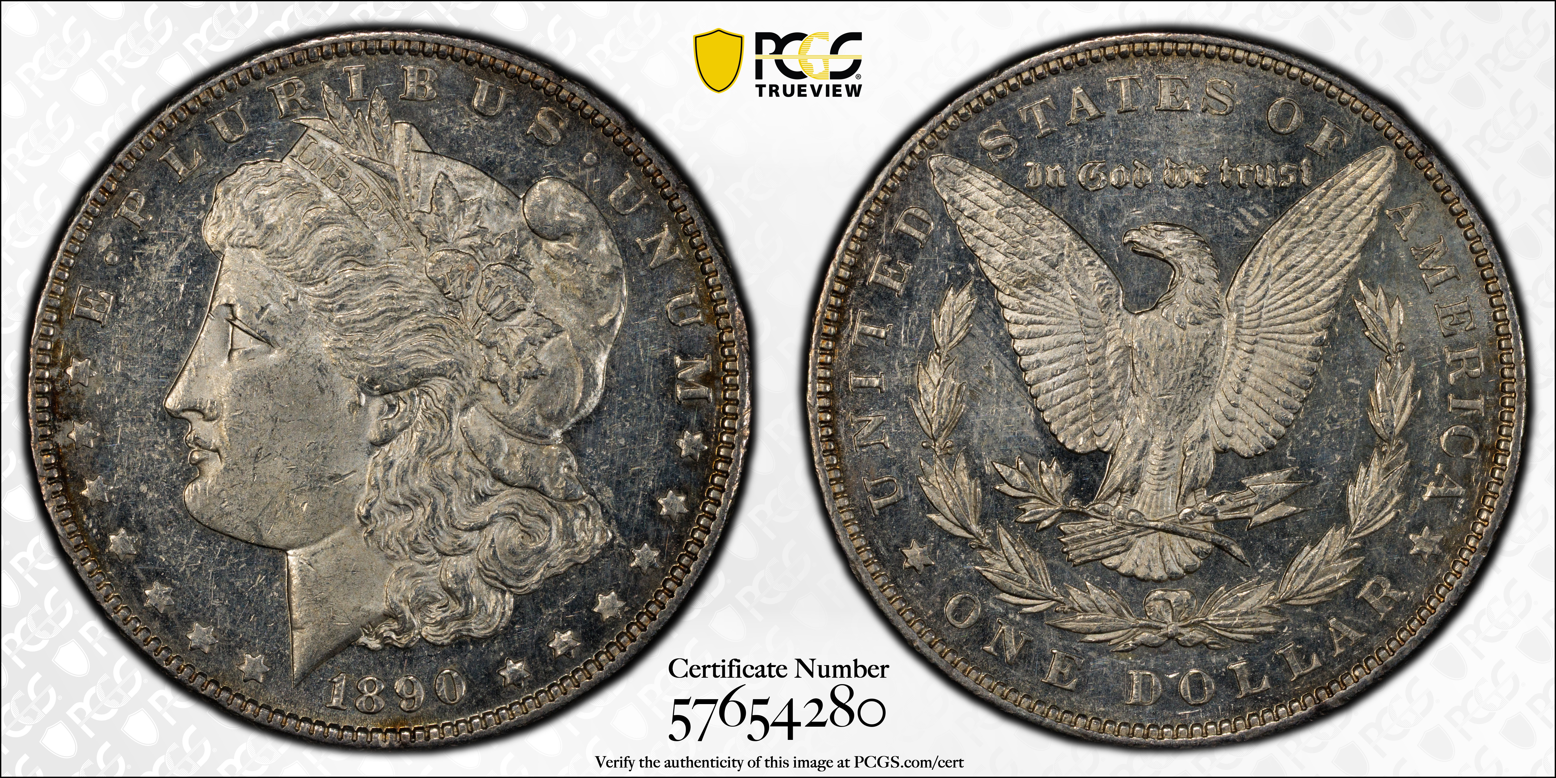 1890 $1, PL MS60PL Certification #57654280, PCGS #7197