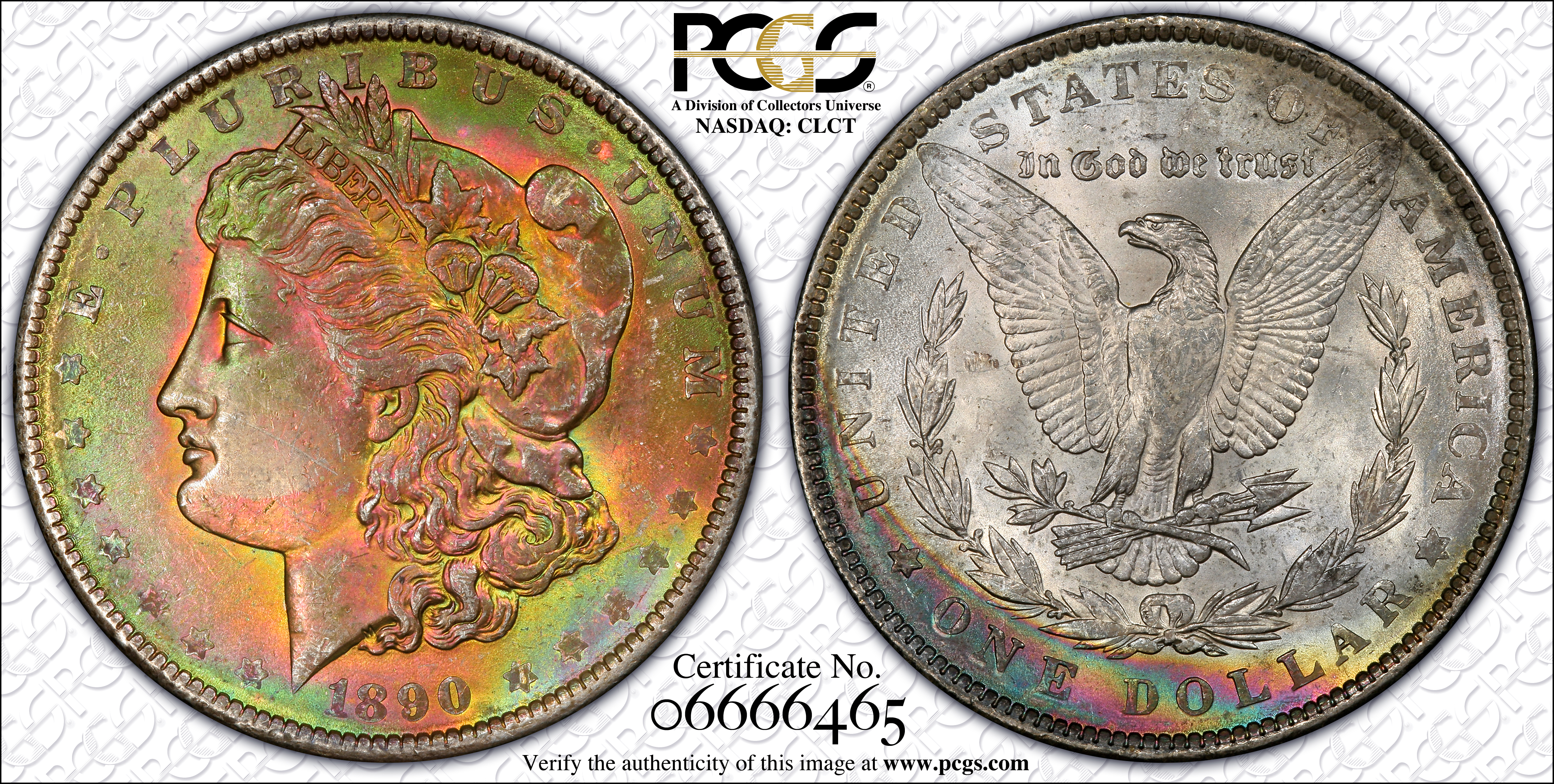 1890 $1 MS64+ Certification #06666465, PCGS #7196