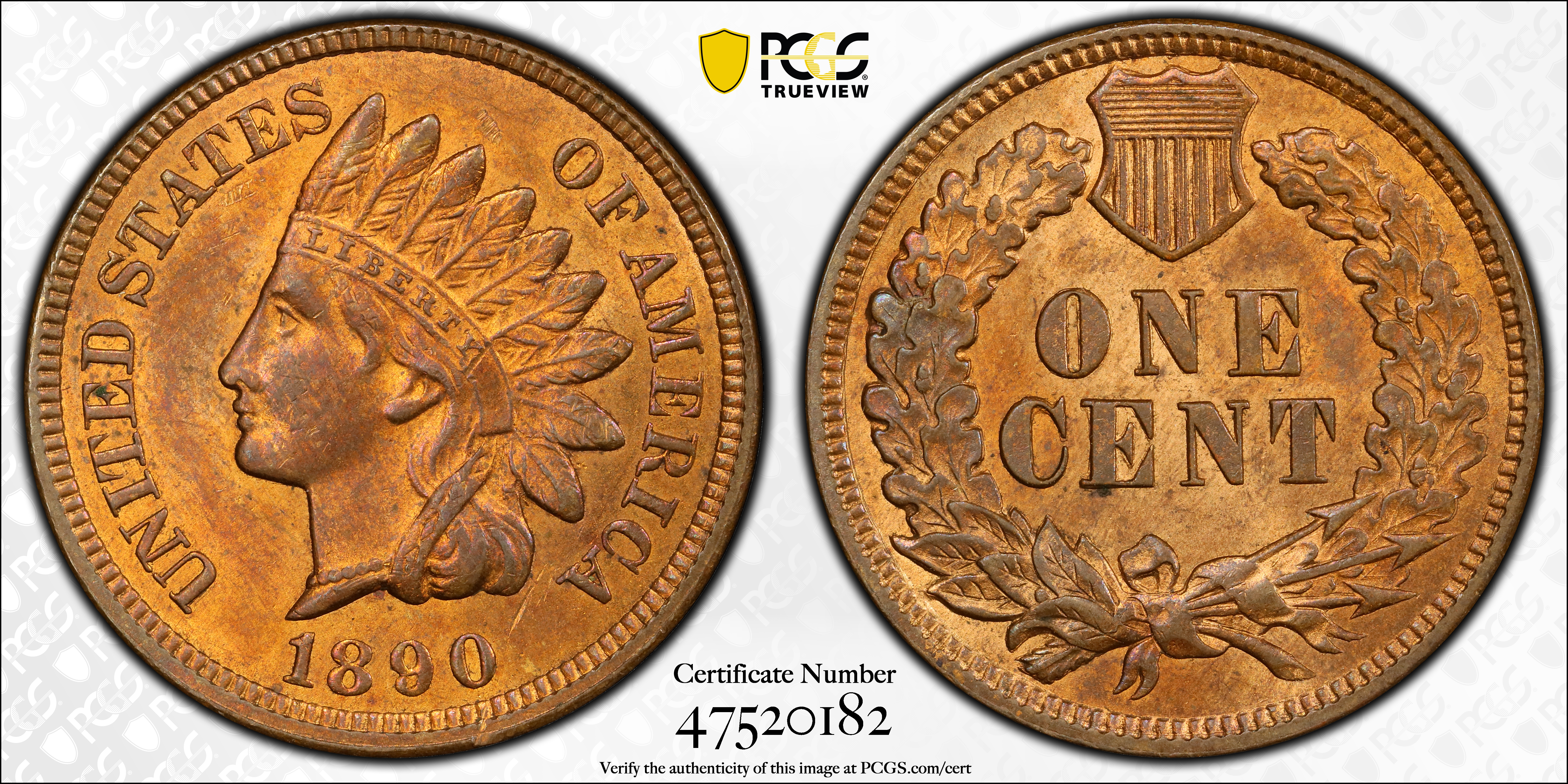1890 1C, RB MS63RB Certification #47520182, PCGS #2176