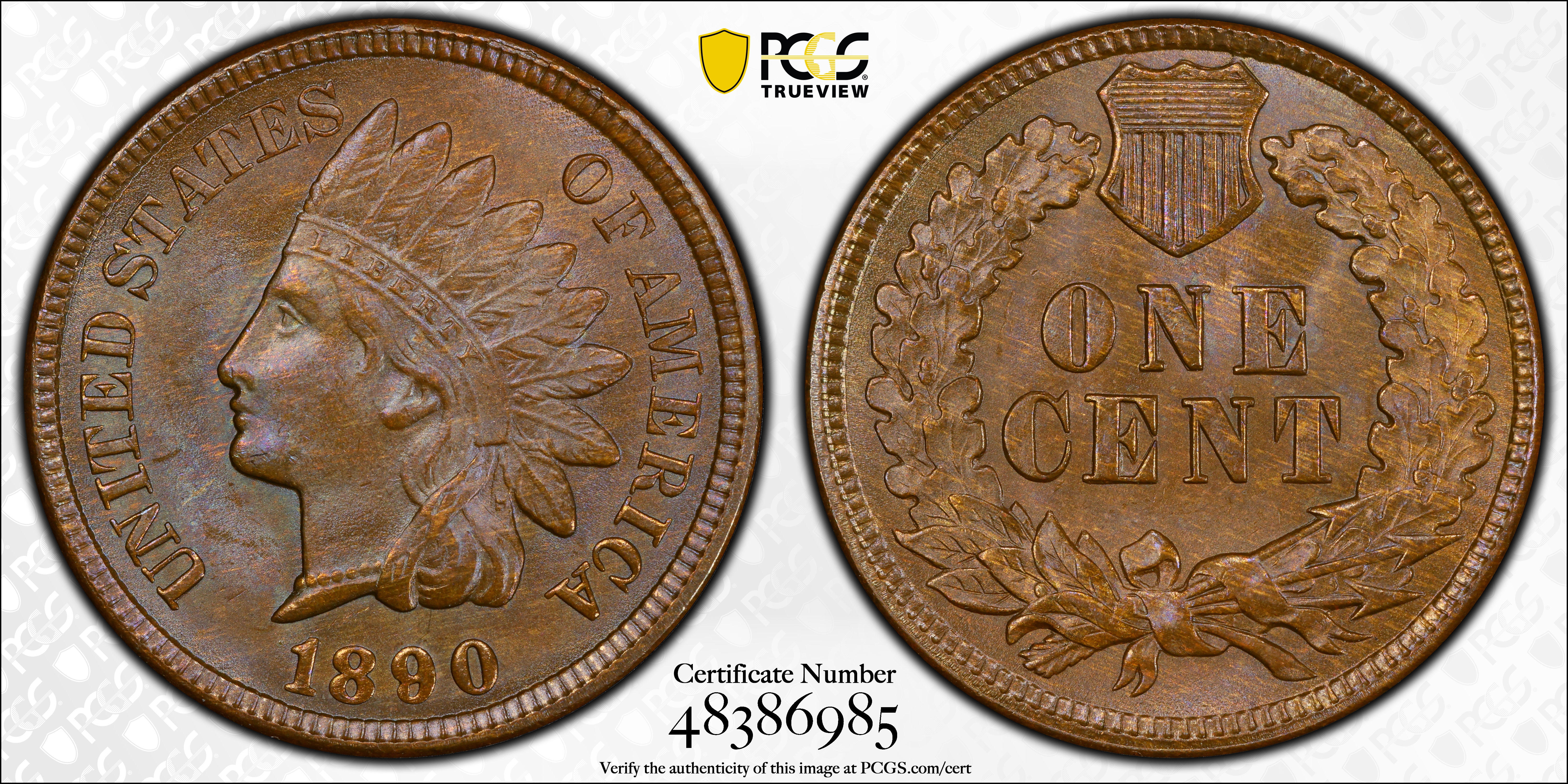1890 1C, BN MS65BN Certification #48386985, PCGS #2175