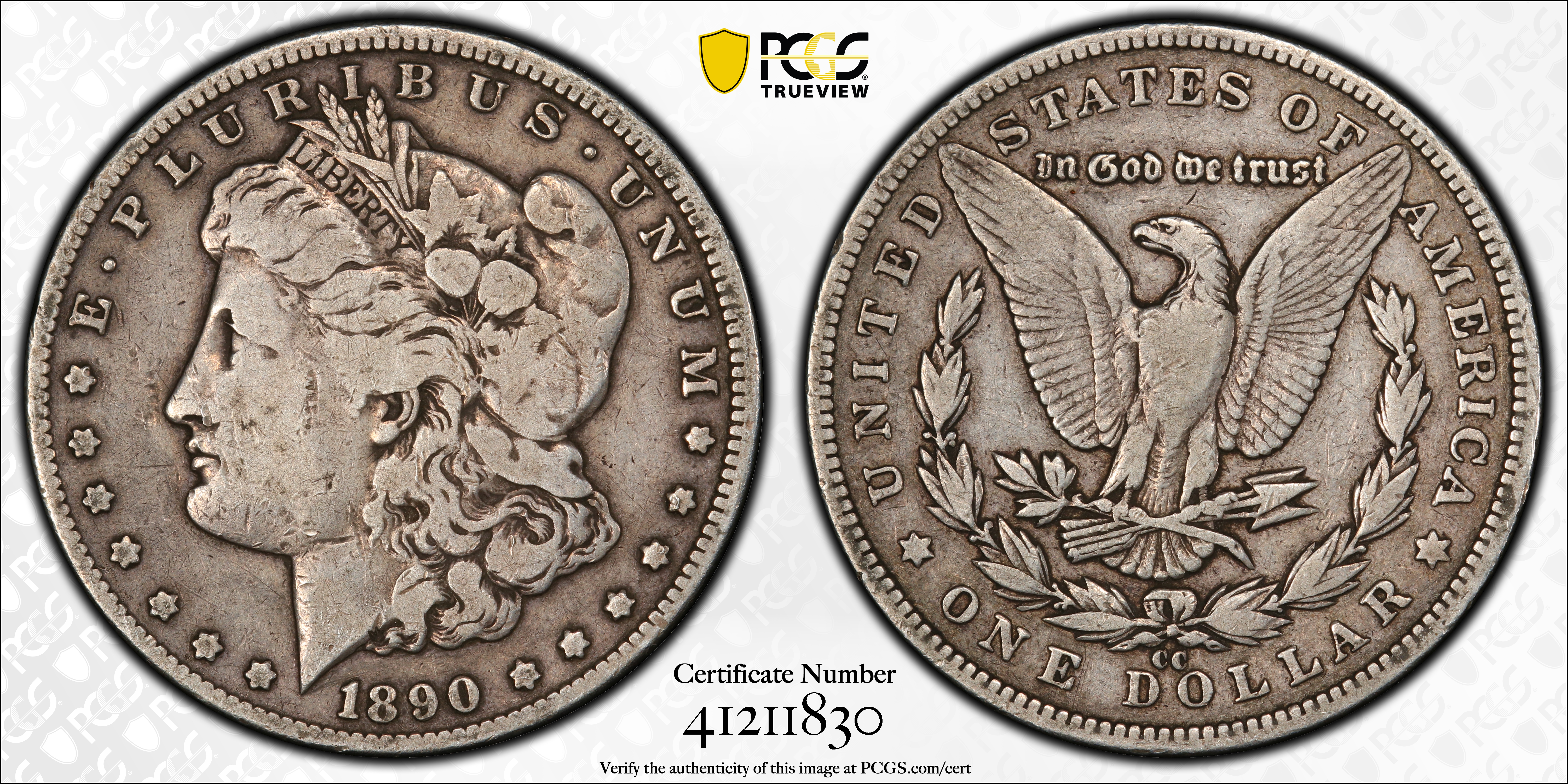 1890-CC $1 N1 Certification #41211830, PCGS #7198