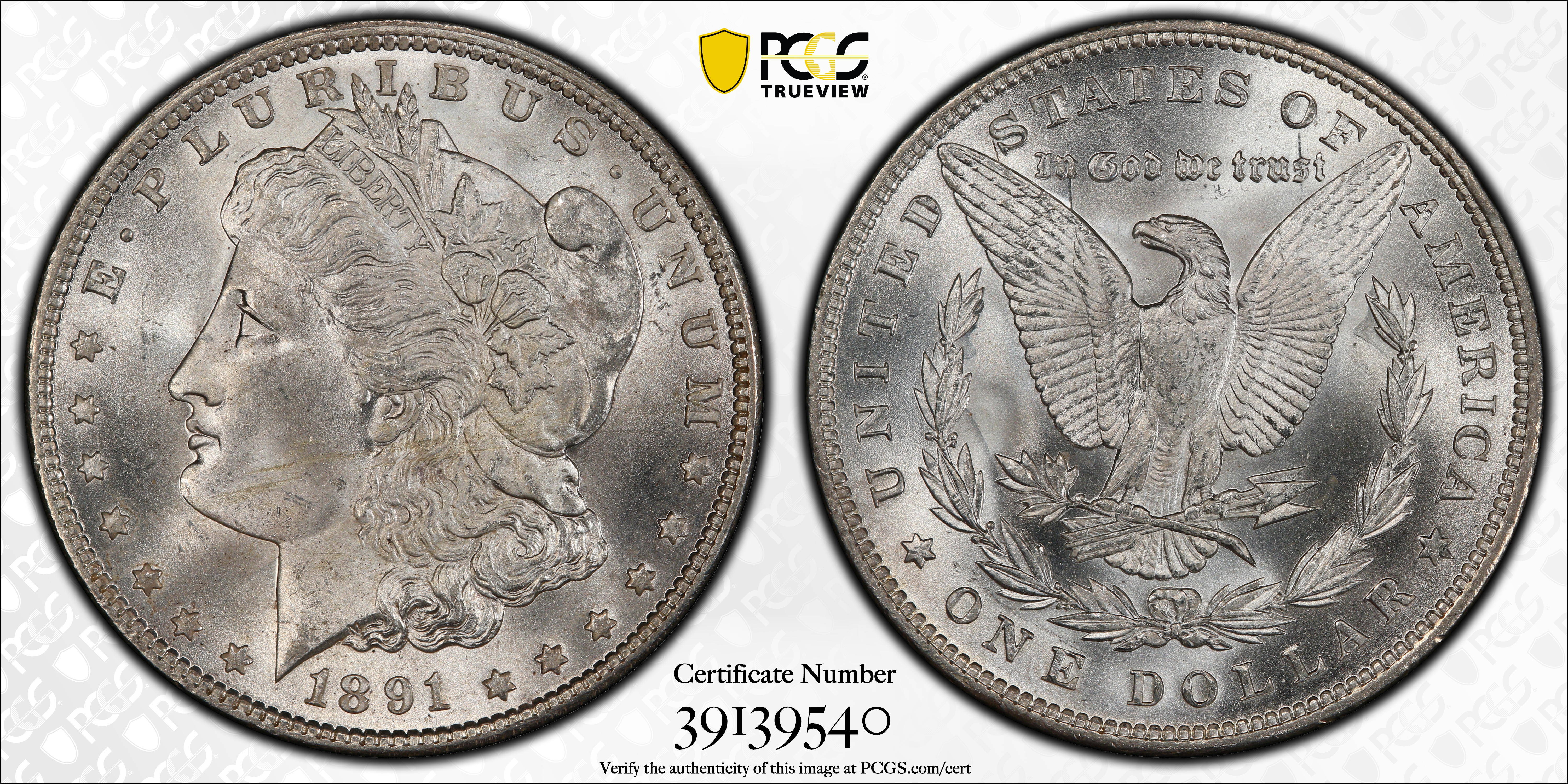 1891 $1 MS64 Certification #39139540, PCGS #7204