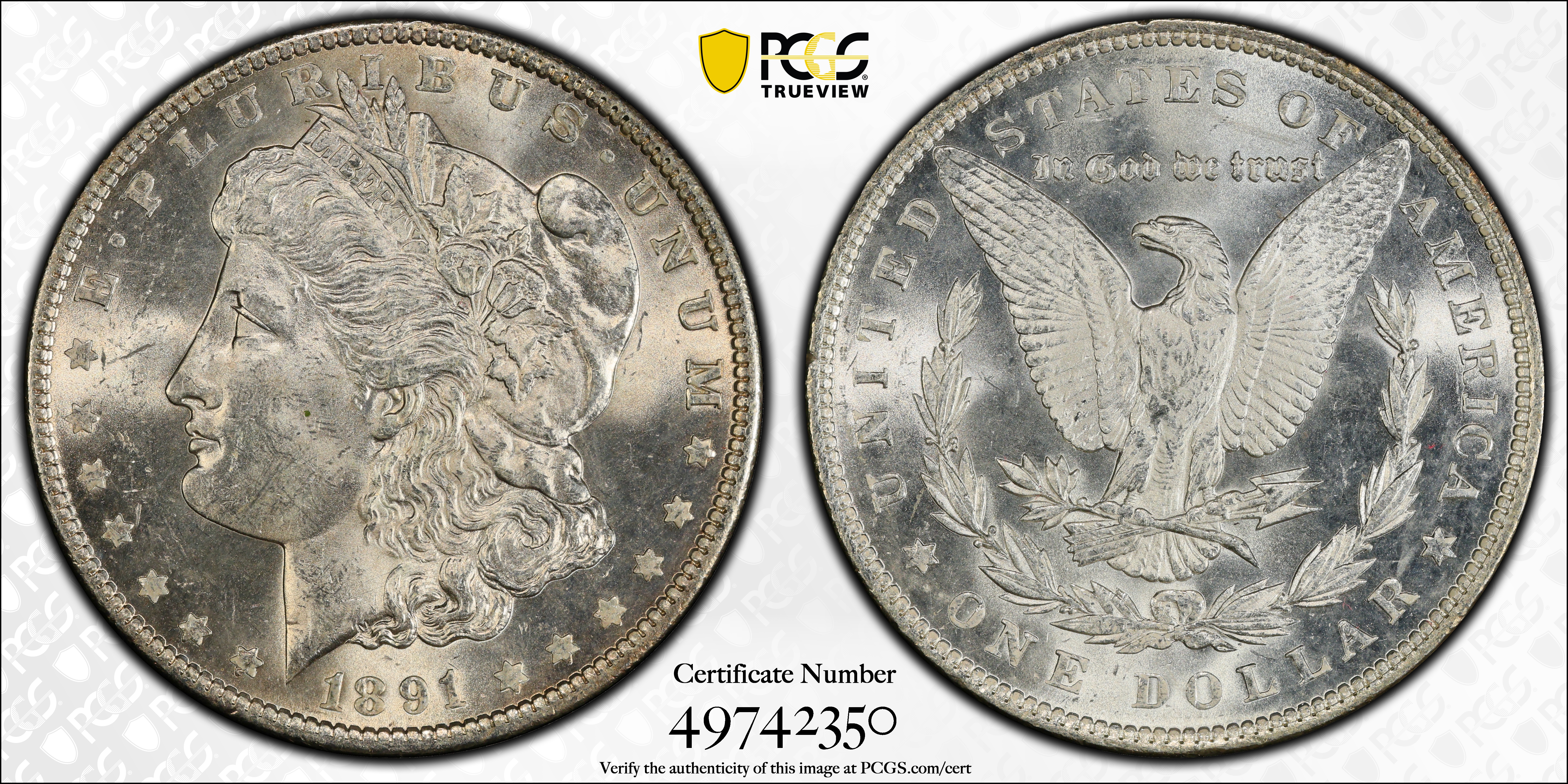 1891 $1 MS62 Certification #49742350, PCGS #7204