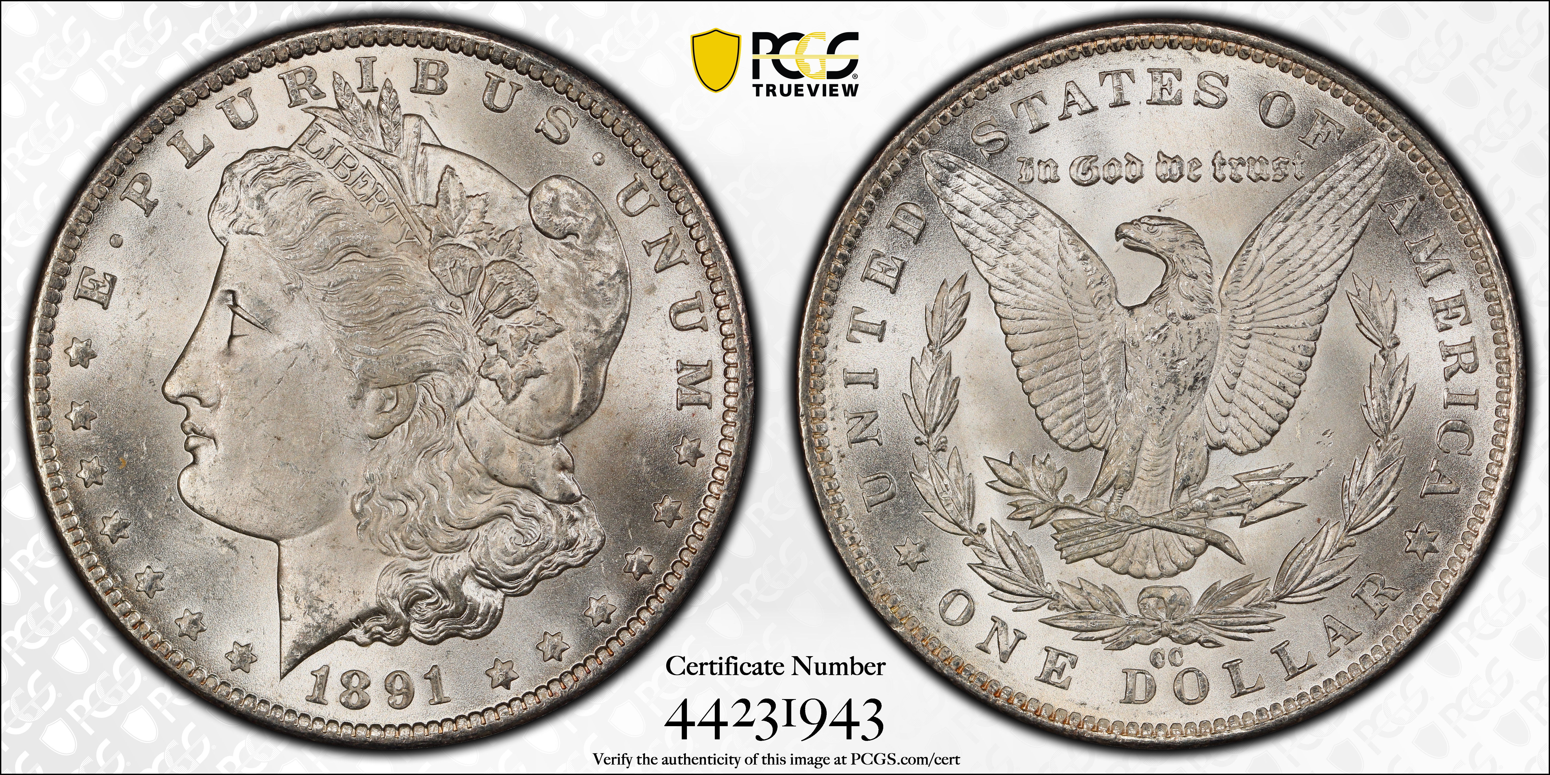 1891-CC $1 MS63 Certification #44231943, PCGS #7206