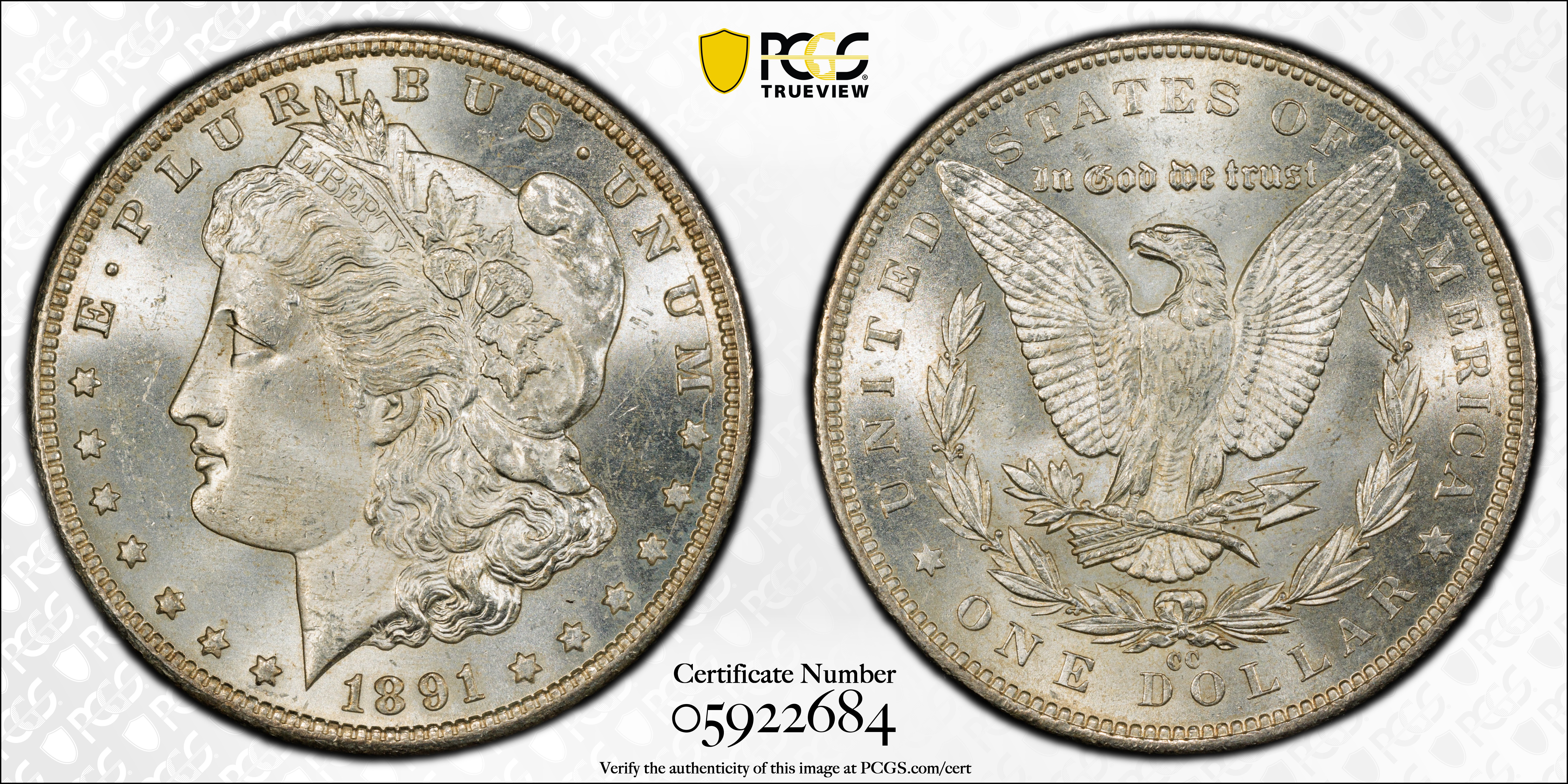 1891-CC $1 MS64 Certification #05922684, PCGS #7206