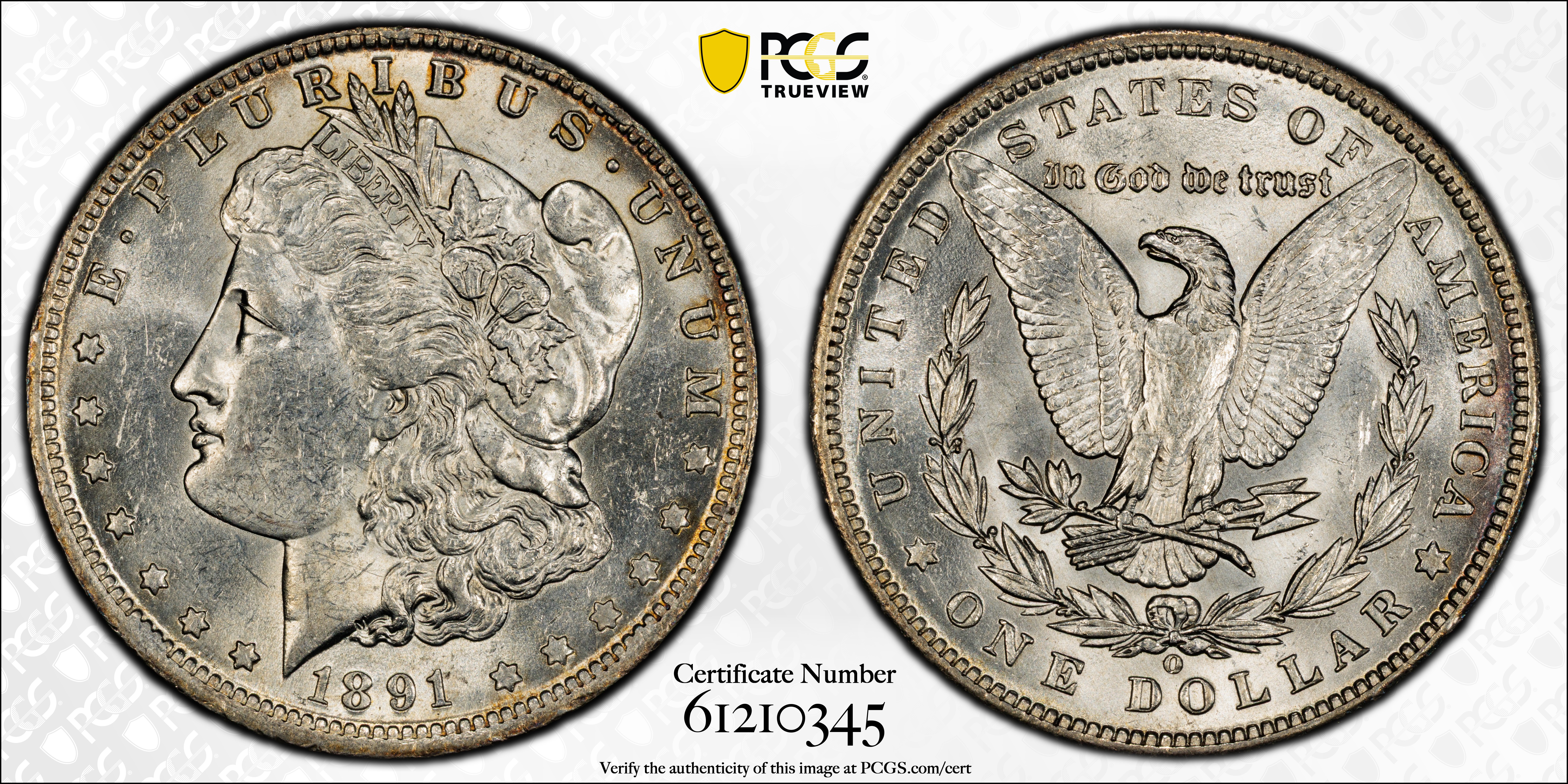 1891-O $1 MS61 Certification #61210345, PCGS #7208
