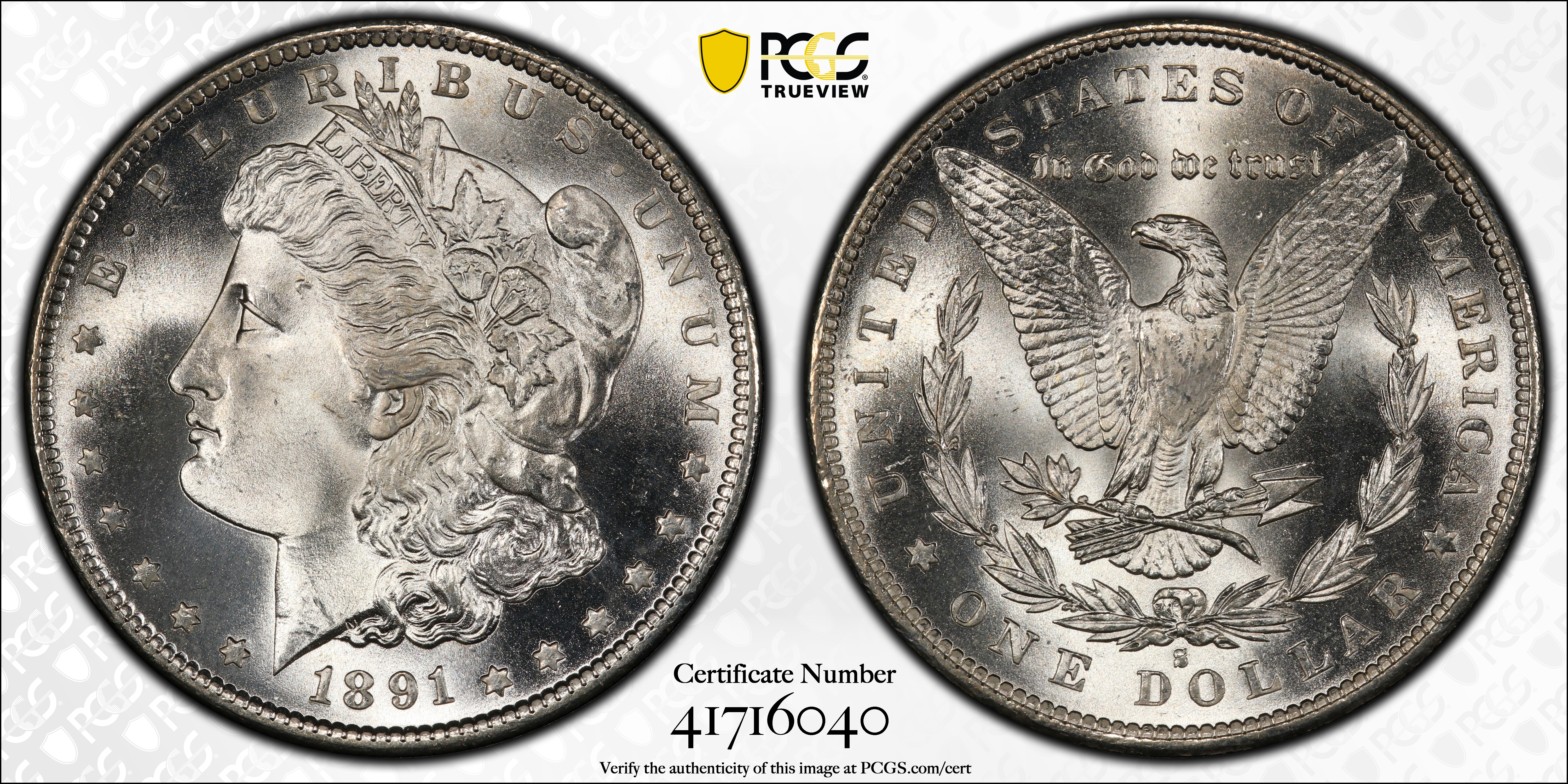1891-S $1 MS66+ Certification #41716040, PCGS #7210