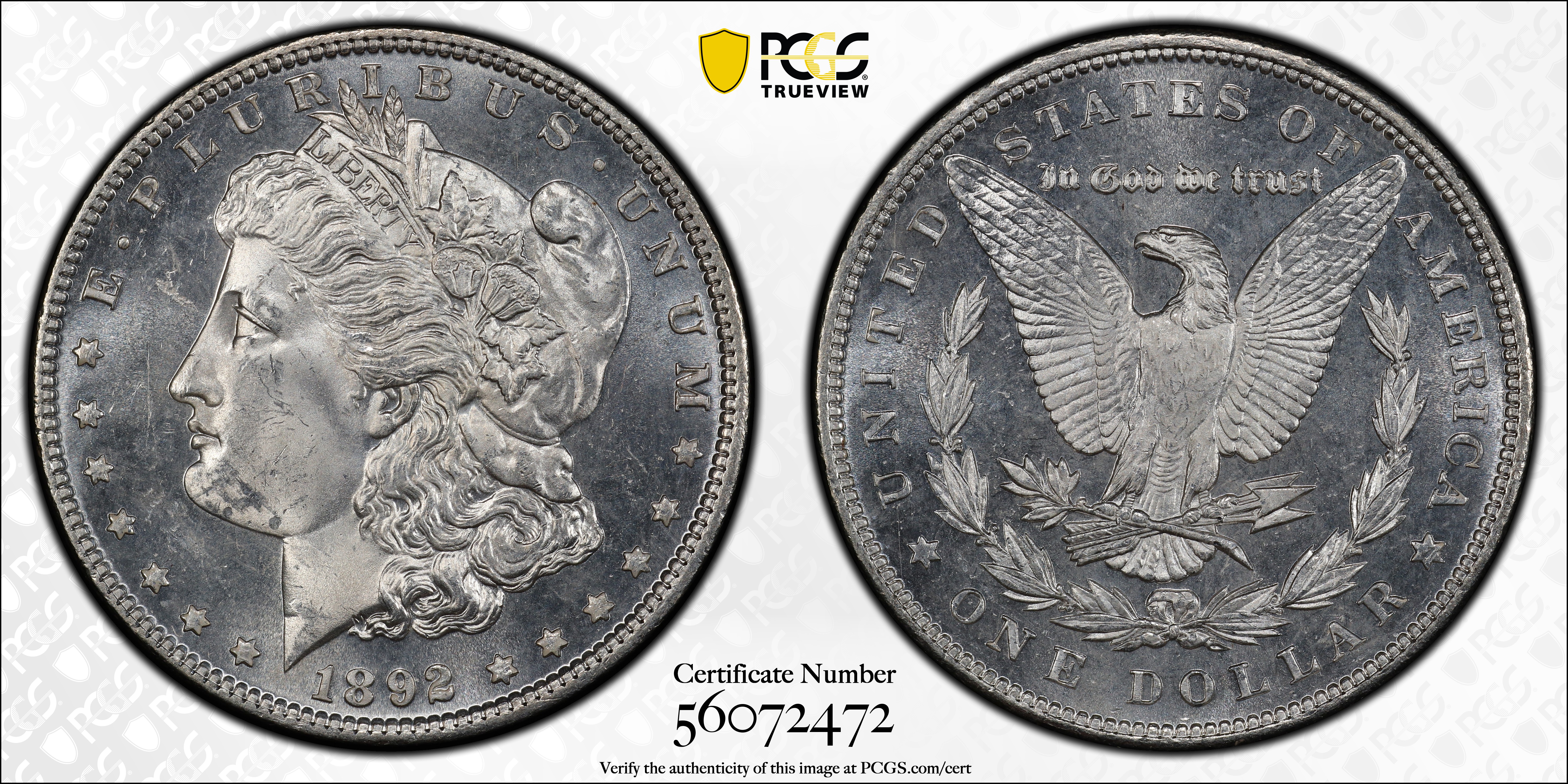 1892 $1, PL MS64PL Certification #56072472, PCGS #7213