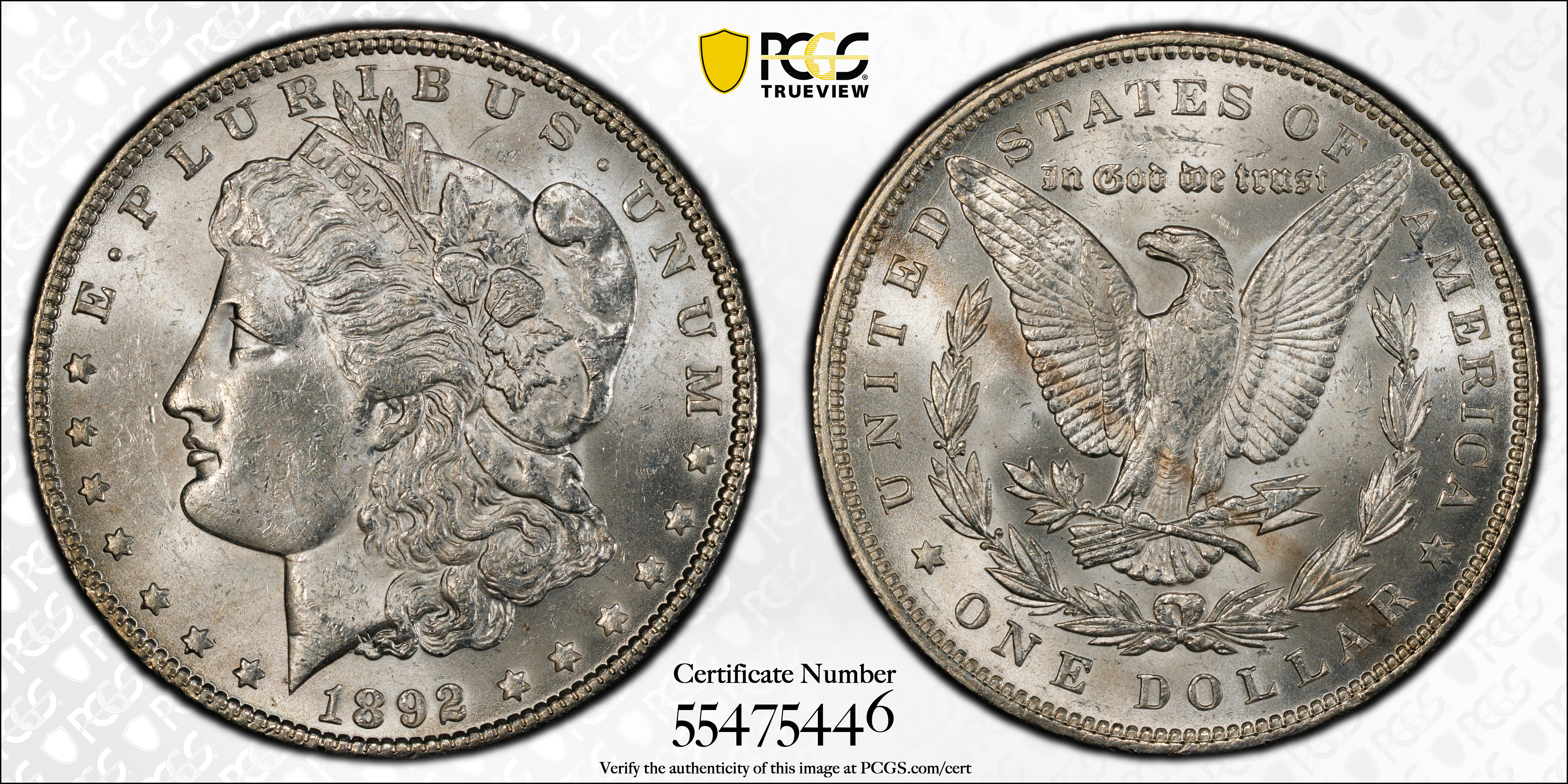 1892 $1 MS62 Certification #55475446, PCGS #7212
