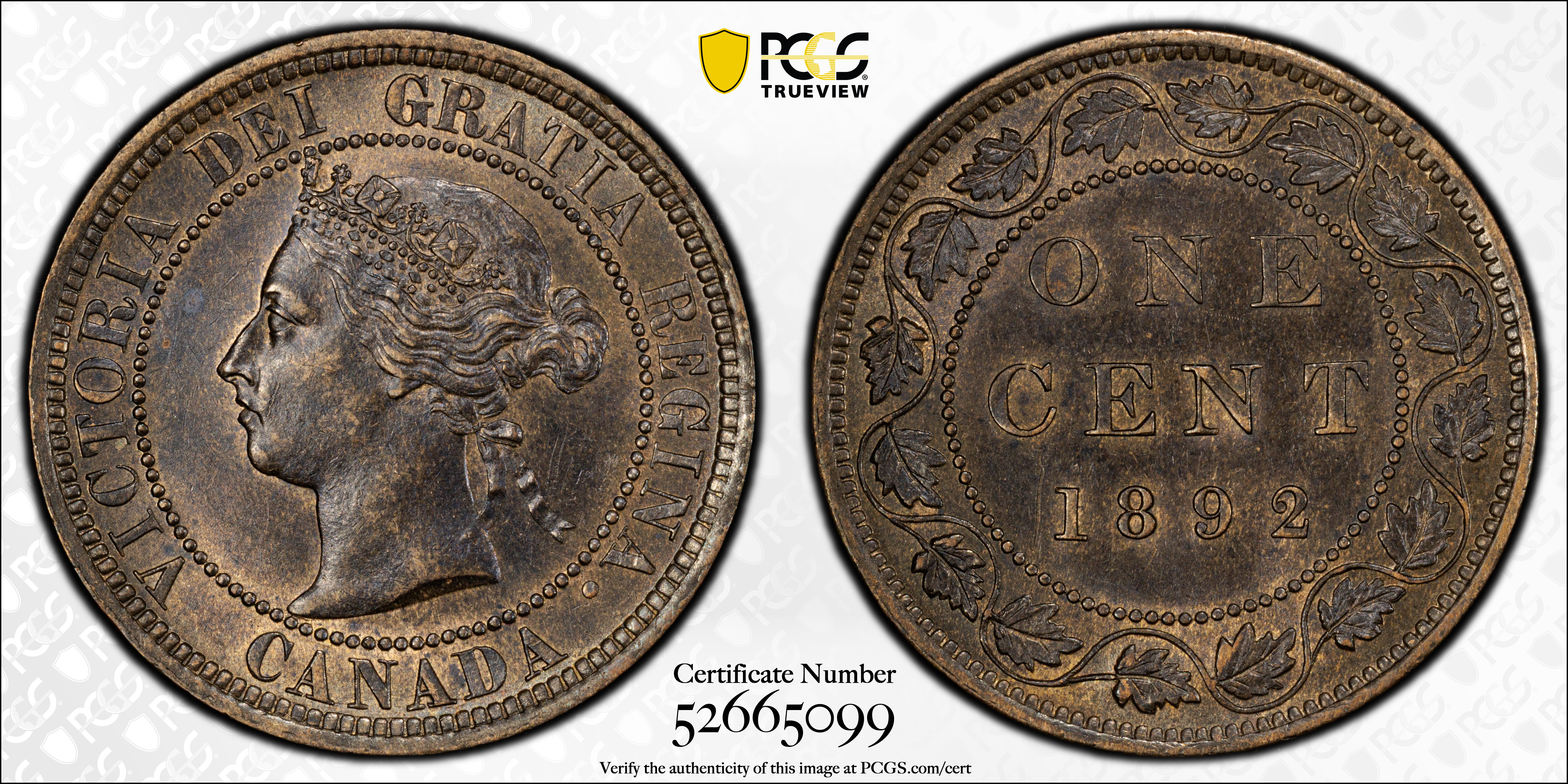 1892 1C, BN MS62BN Certification #52665099, PCGS #30051