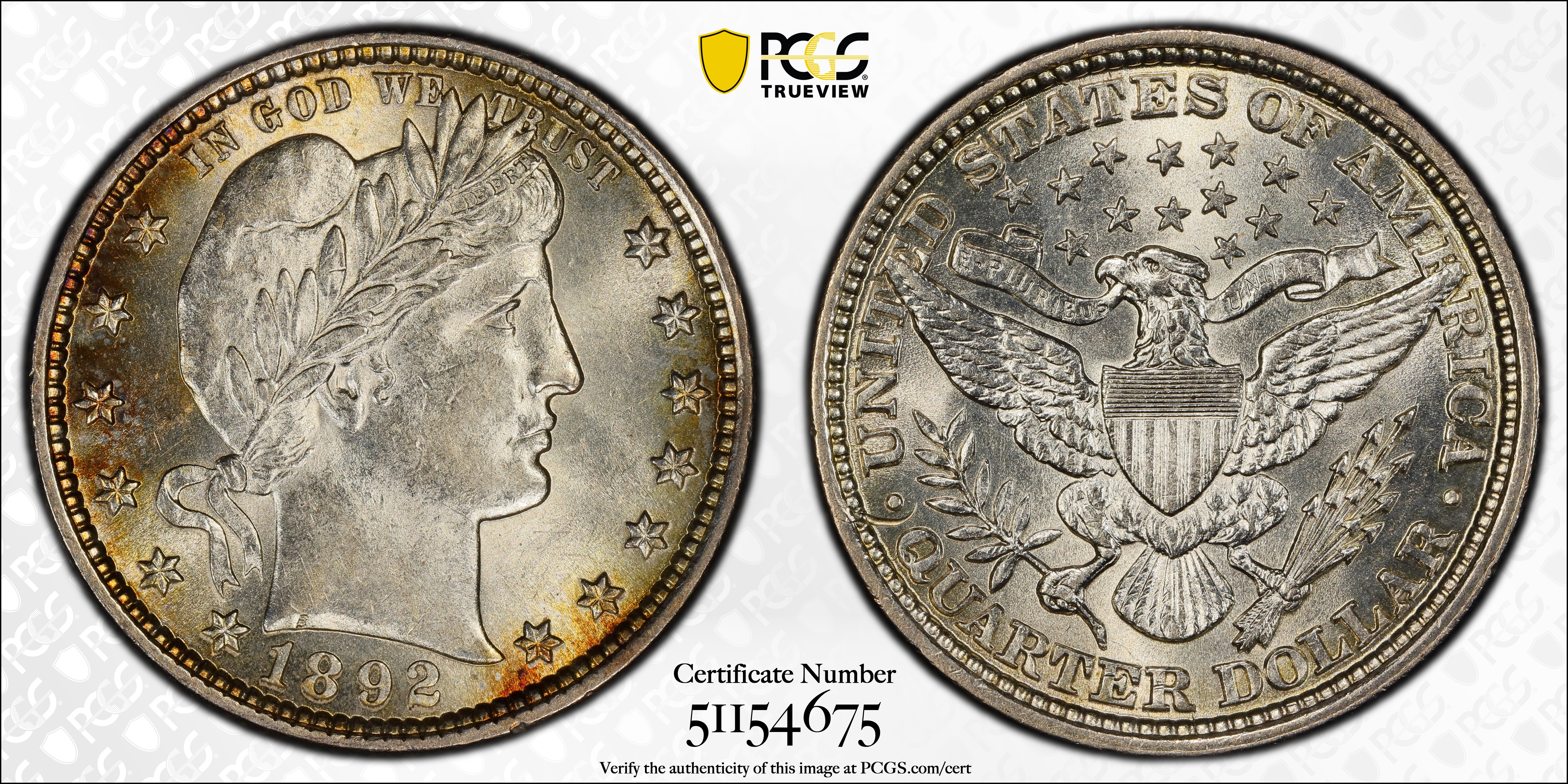 1892 25C MS61 Certification #51154675, PCGS #5601