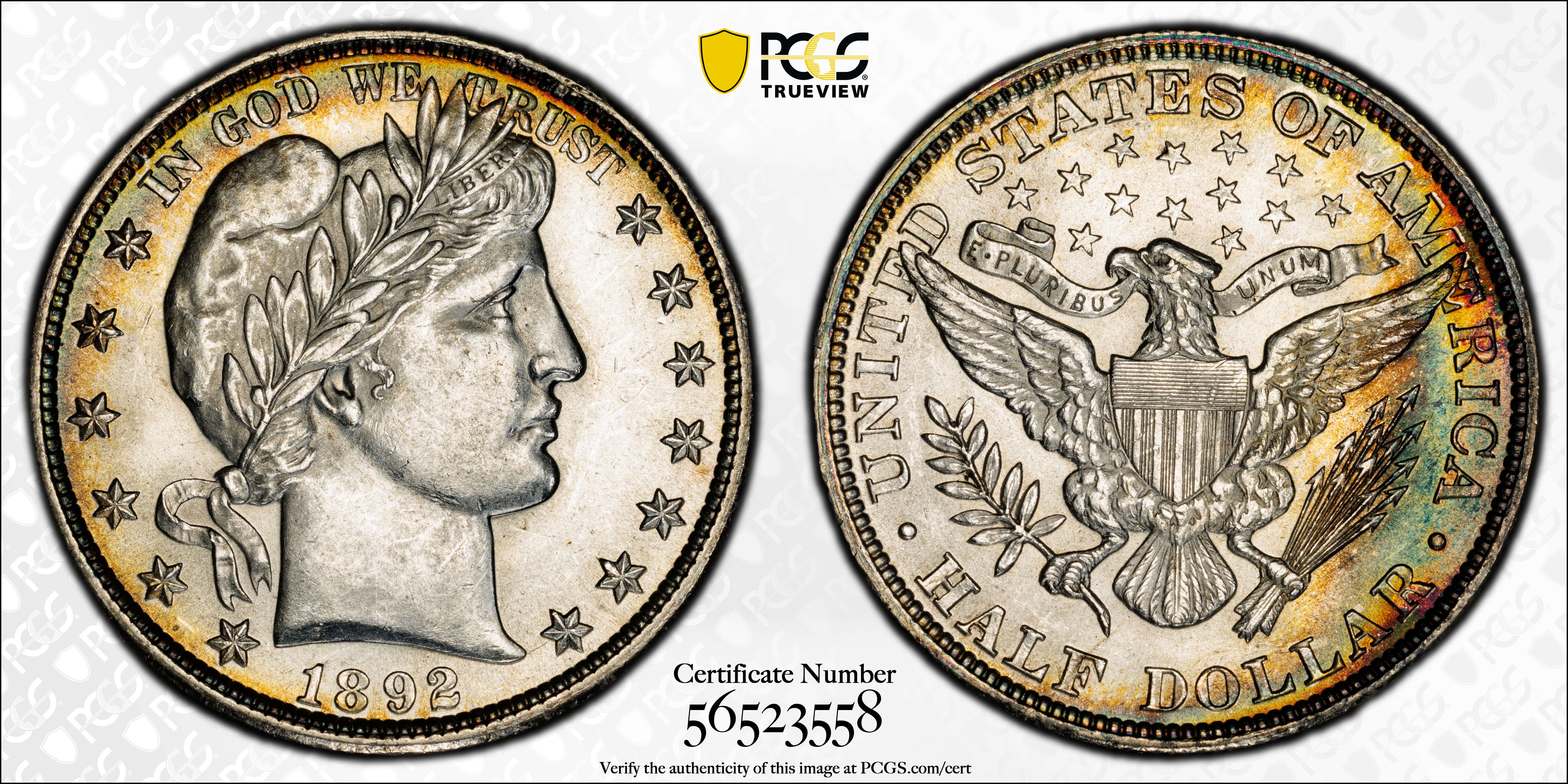 1892 50C MS62 Certification #56523558, PCGS #6461