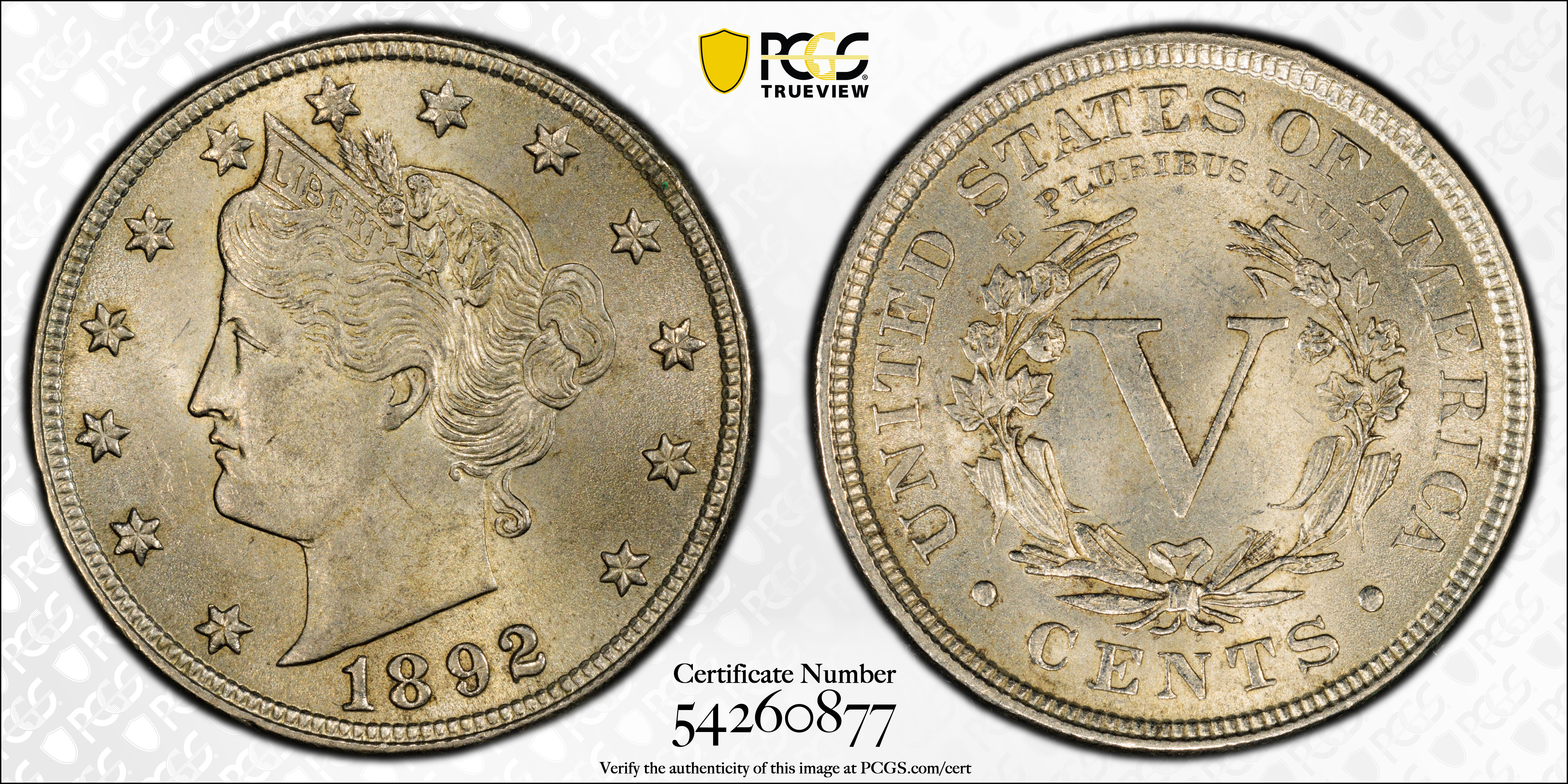1892 5C MS63 Certification #54260877, PCGS #3853