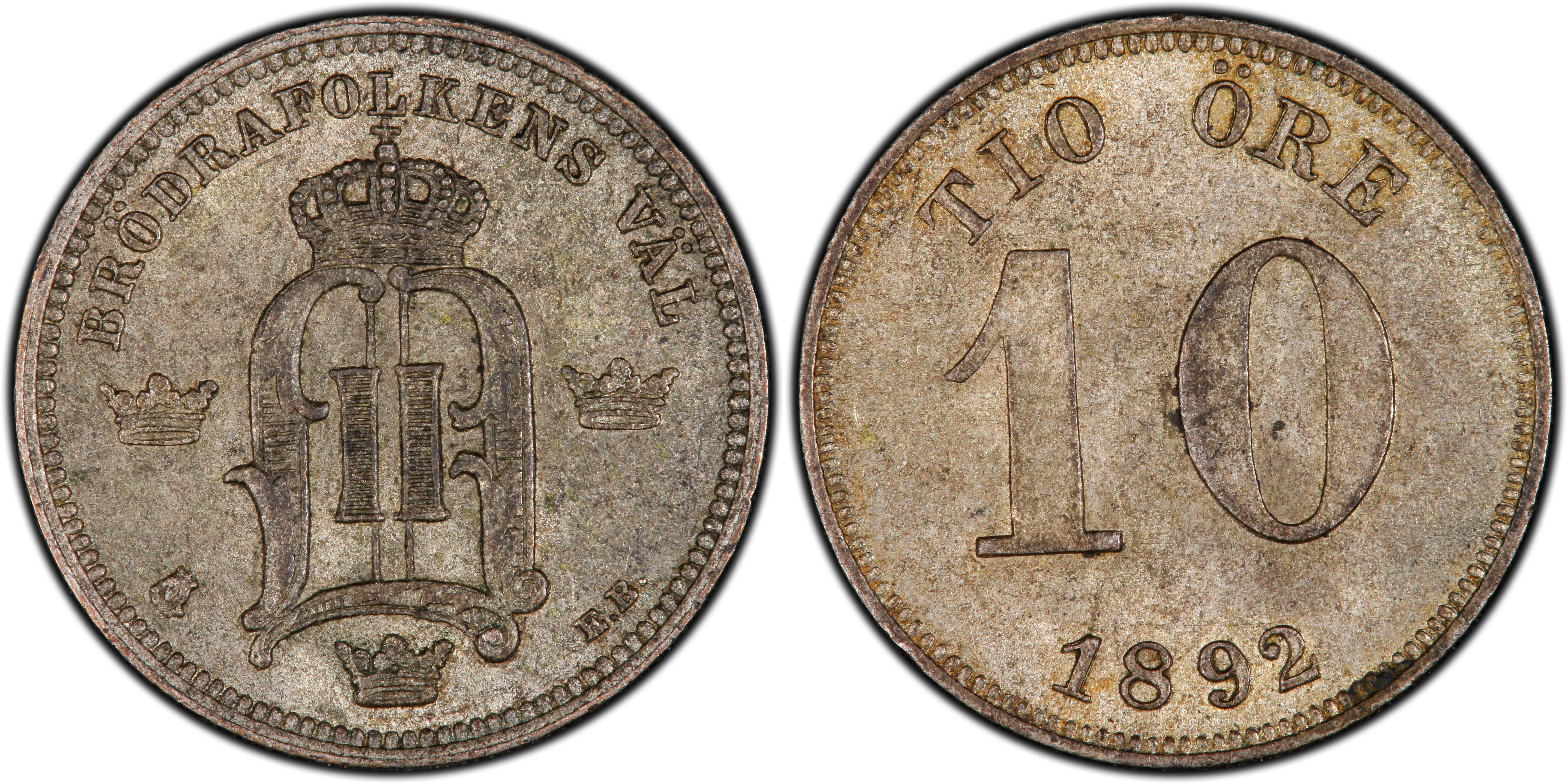 1892 EB 10 Öre MS62 Certification #20829749, PCGS #418335