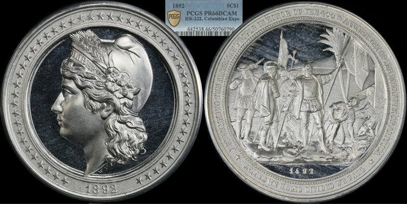 1892 SC$1 HK-222, Columbian Expo, DCAM PR66DCAM Certification #50760790, PCGS #642538
