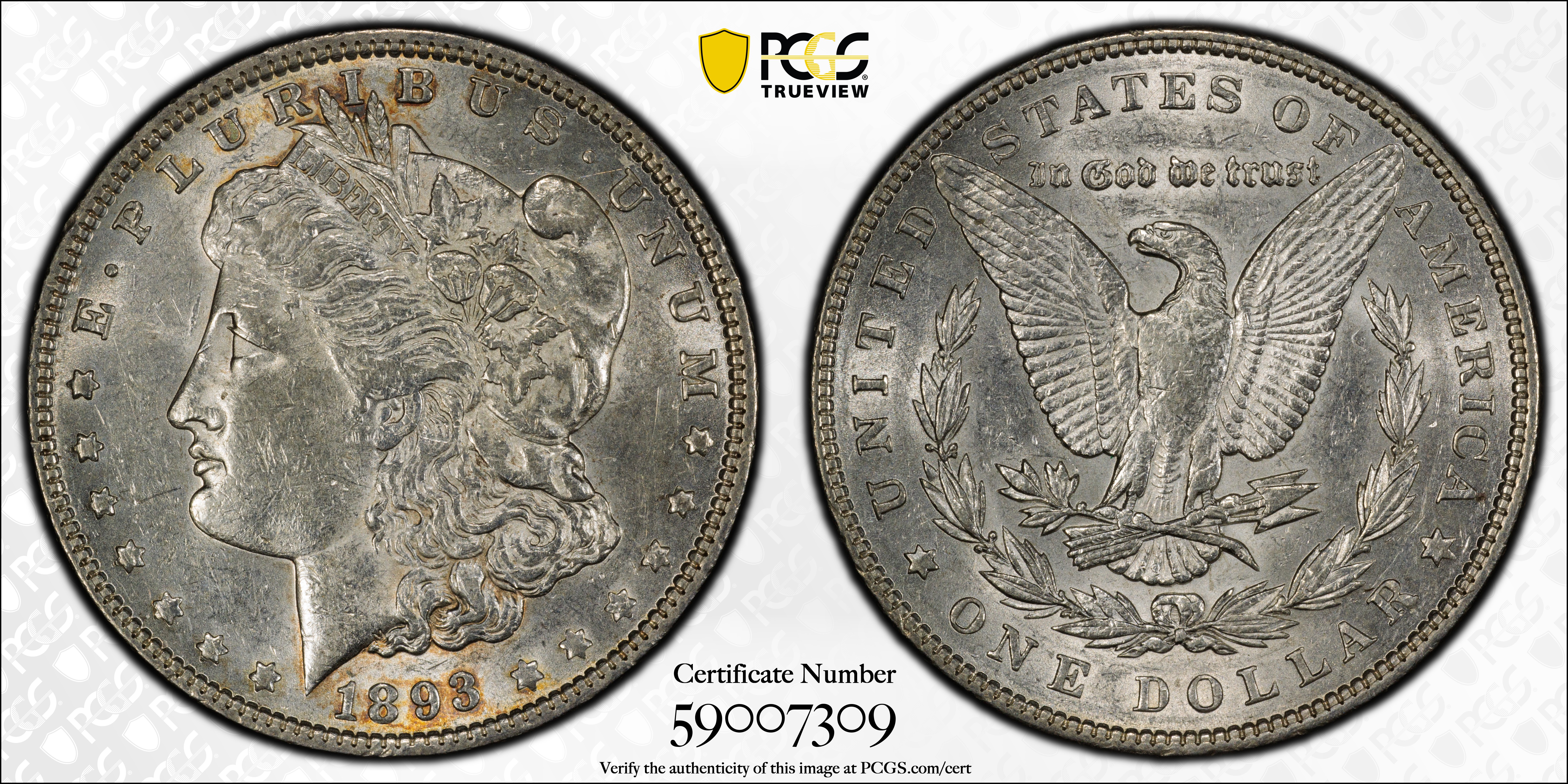 1893 $1 AU50 Certification #59007309, PCGS #7220