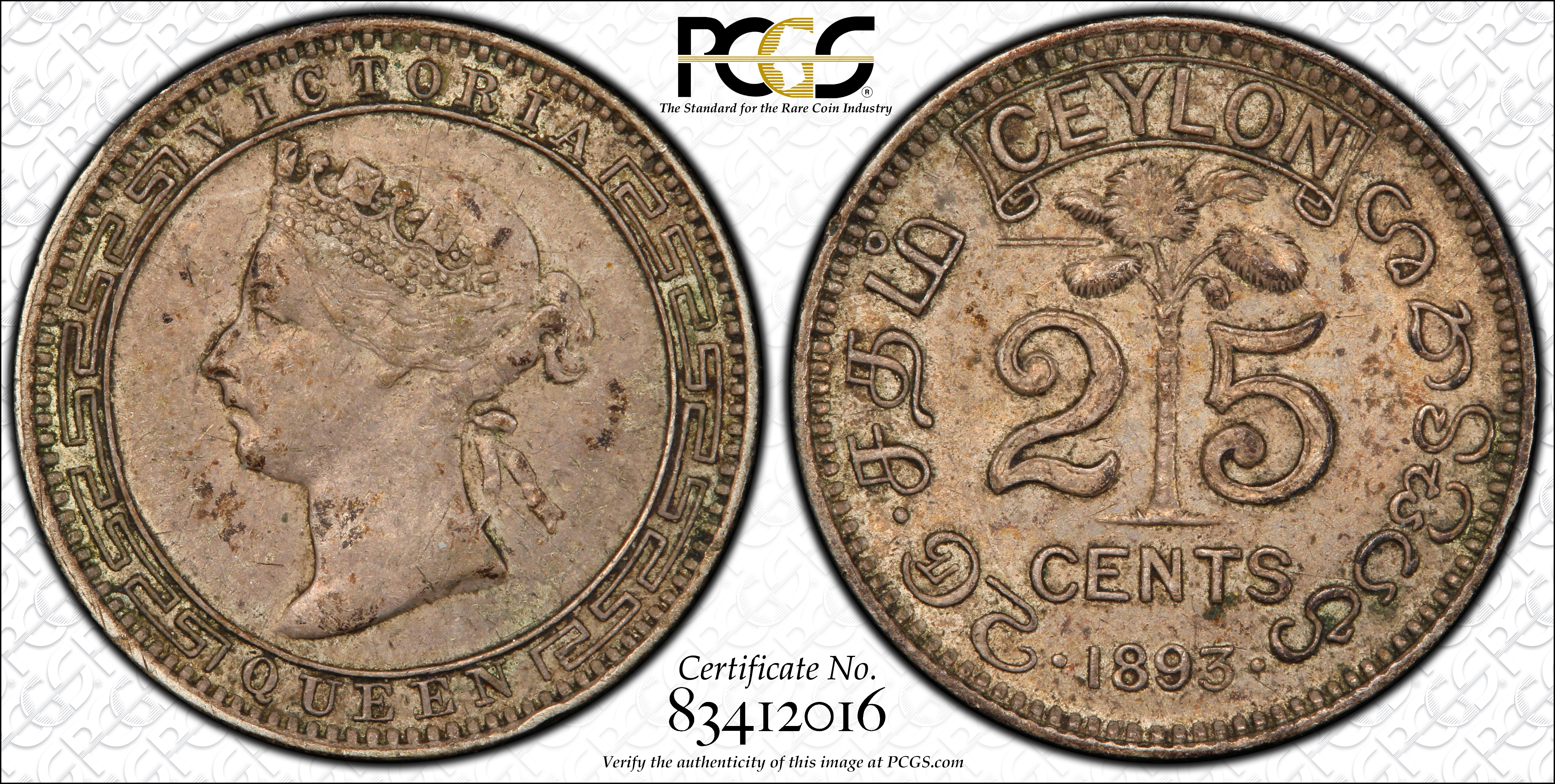 1893 25C AU50 Certification #83412016, PCGS #436437