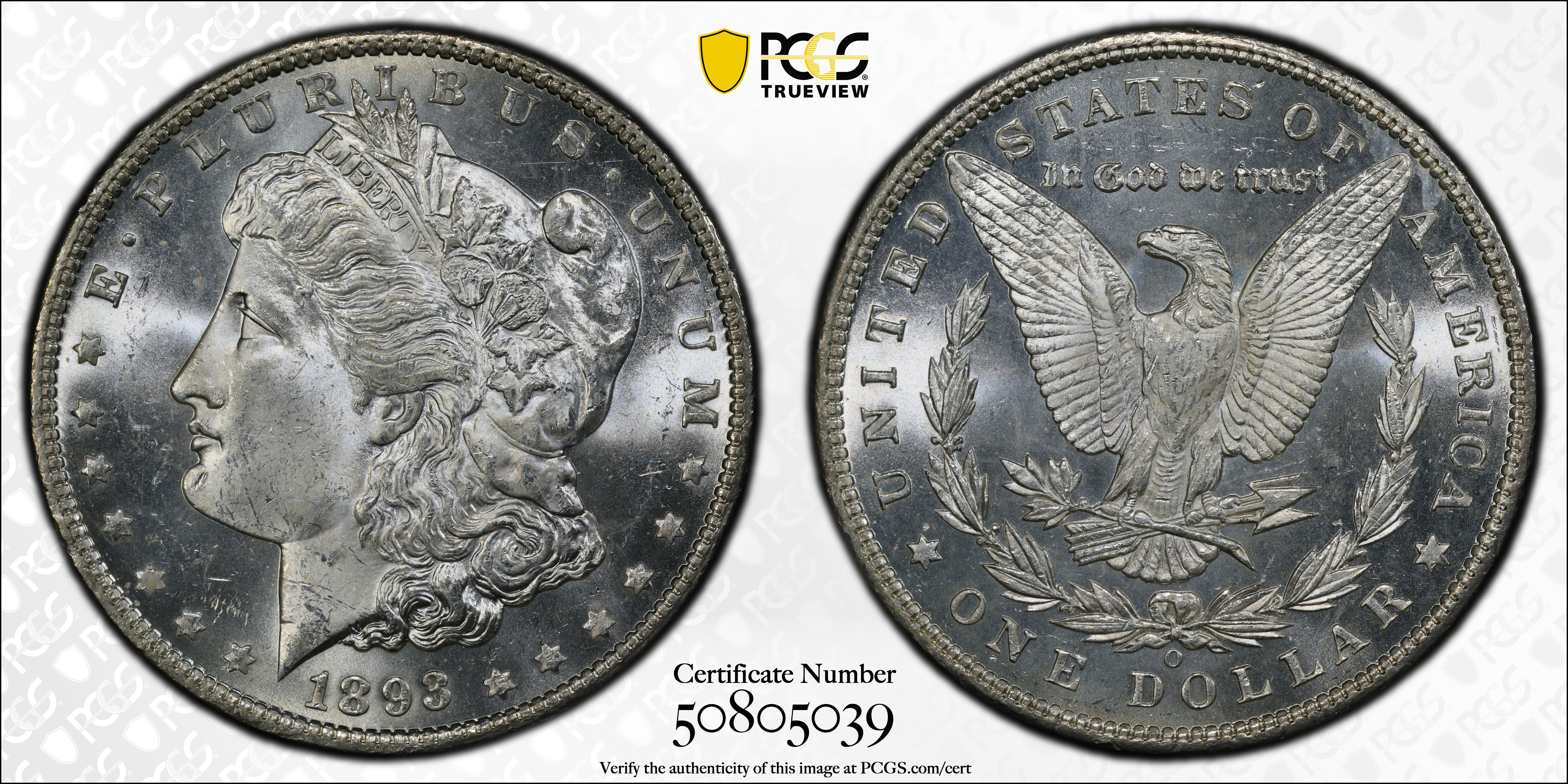 1893-O $1 MS64 Certification #50805039, PCGS #7224