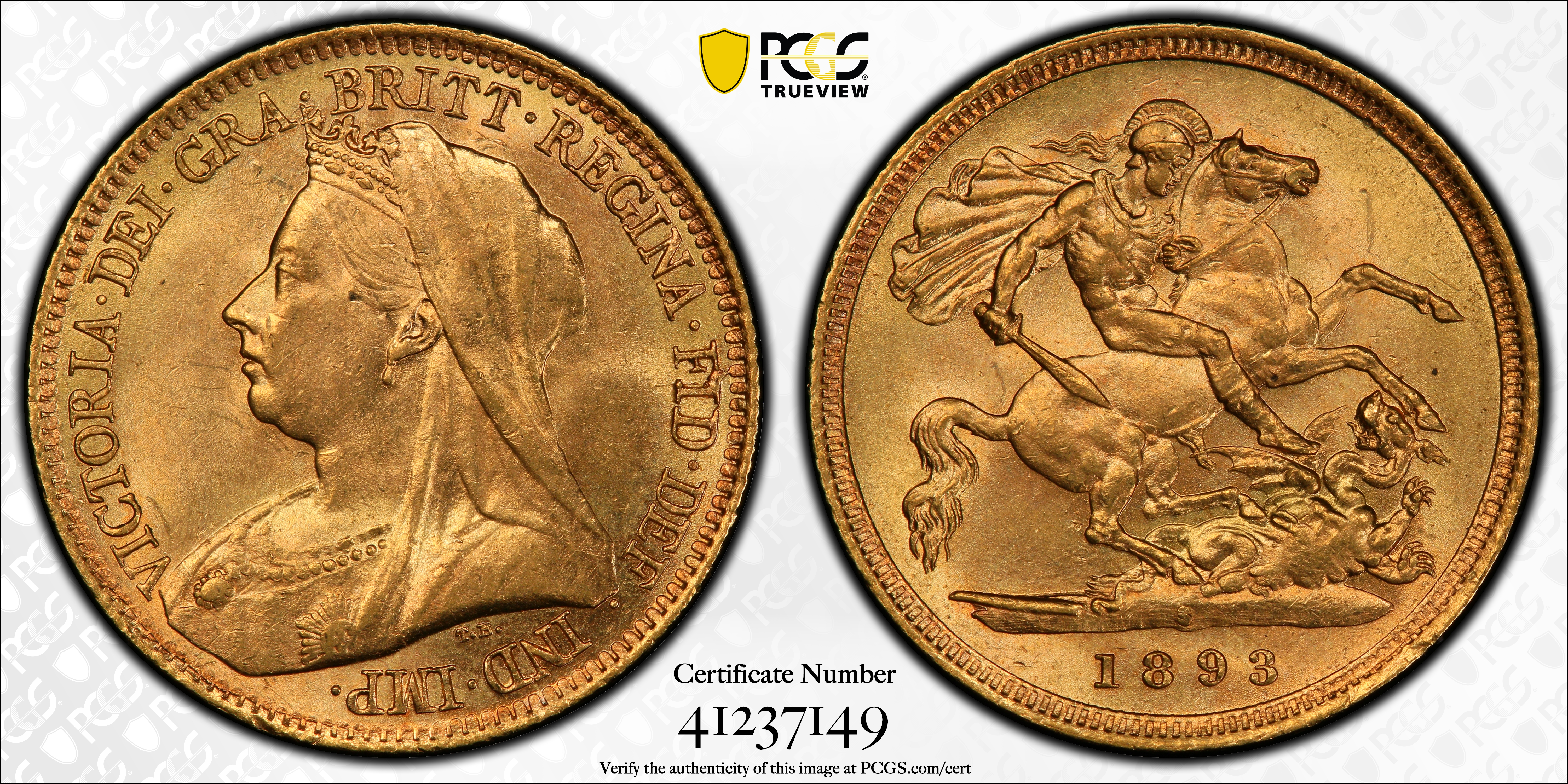 1893-S 1/2 Sov S-3881 Old Head MS61 Certification #41237149, PCGS #113091