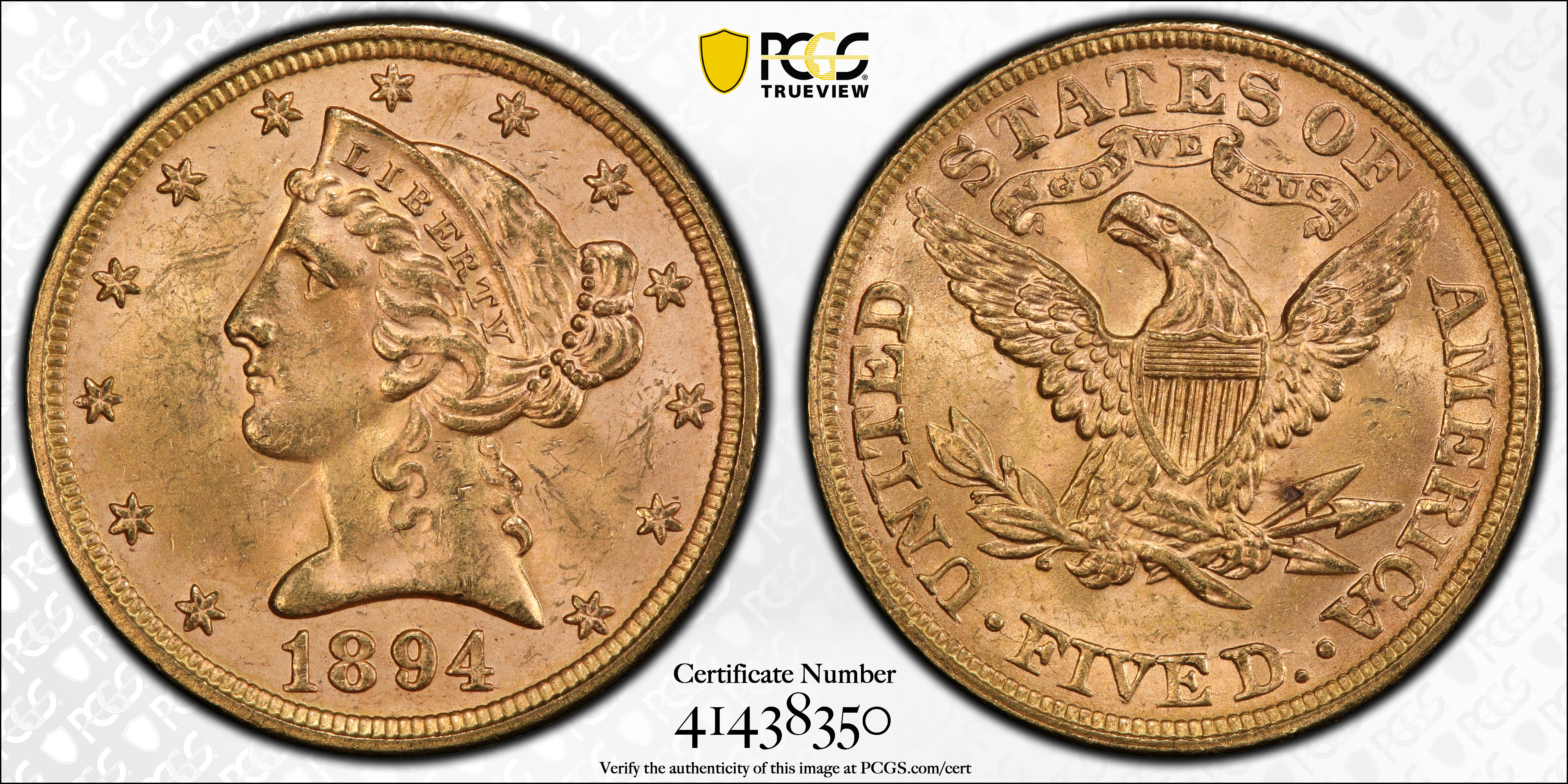 1894 $5 MS64 Certification #41438350, PCGS #8387