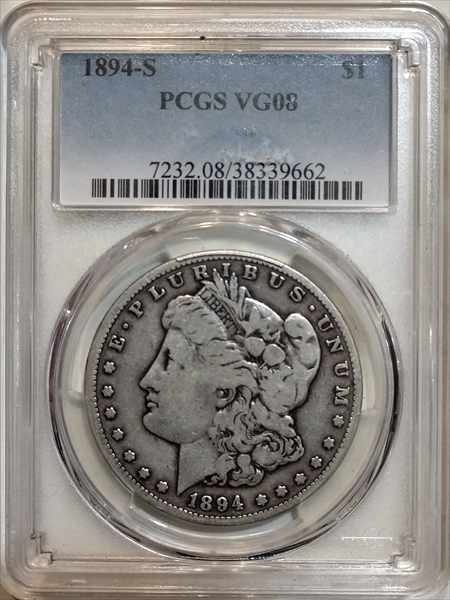 1894-S $1 VG8 Certification #38339662, PCGS #7232